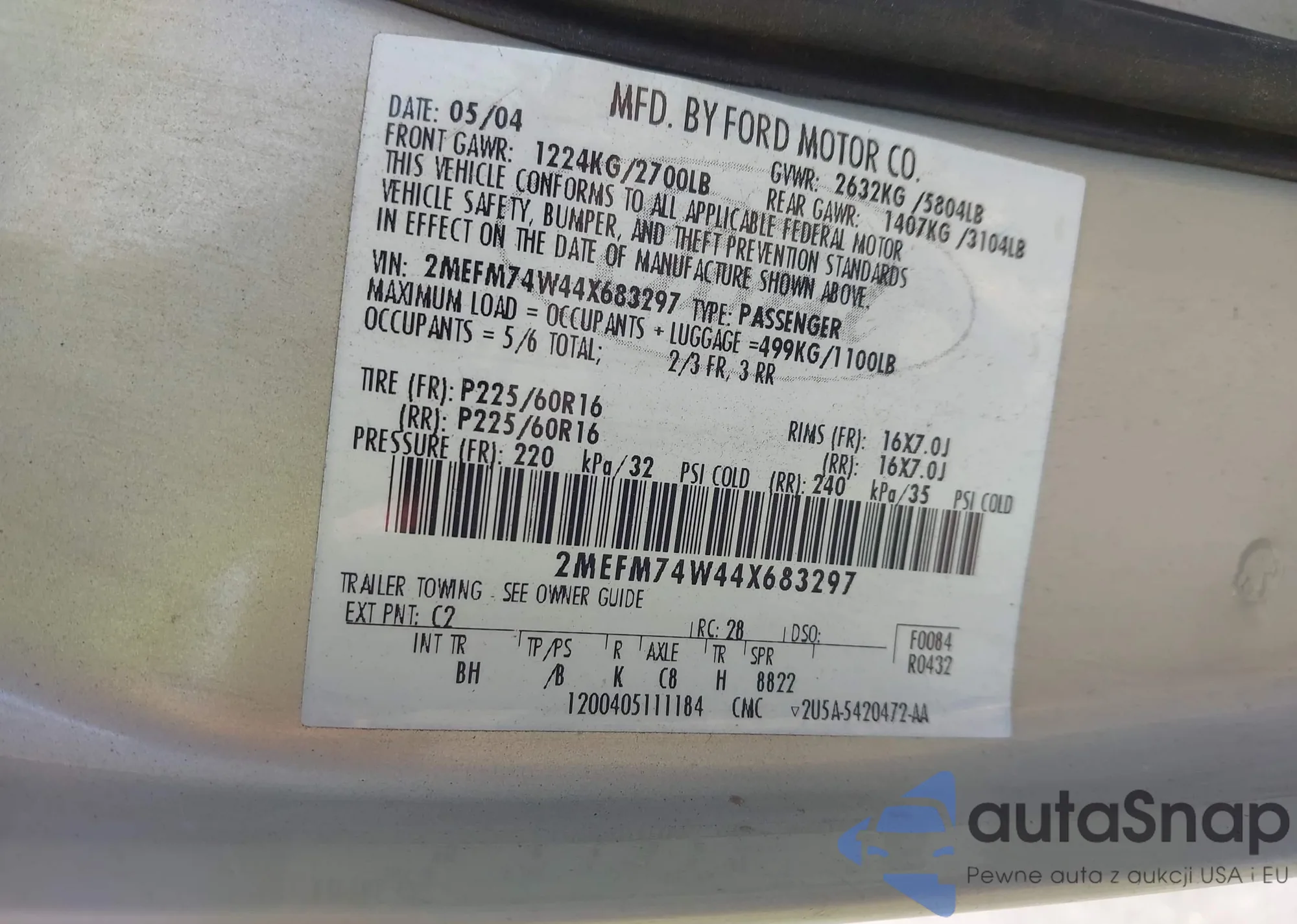 LOT: 43105429 VIN: 1FTRX14W47NA76440