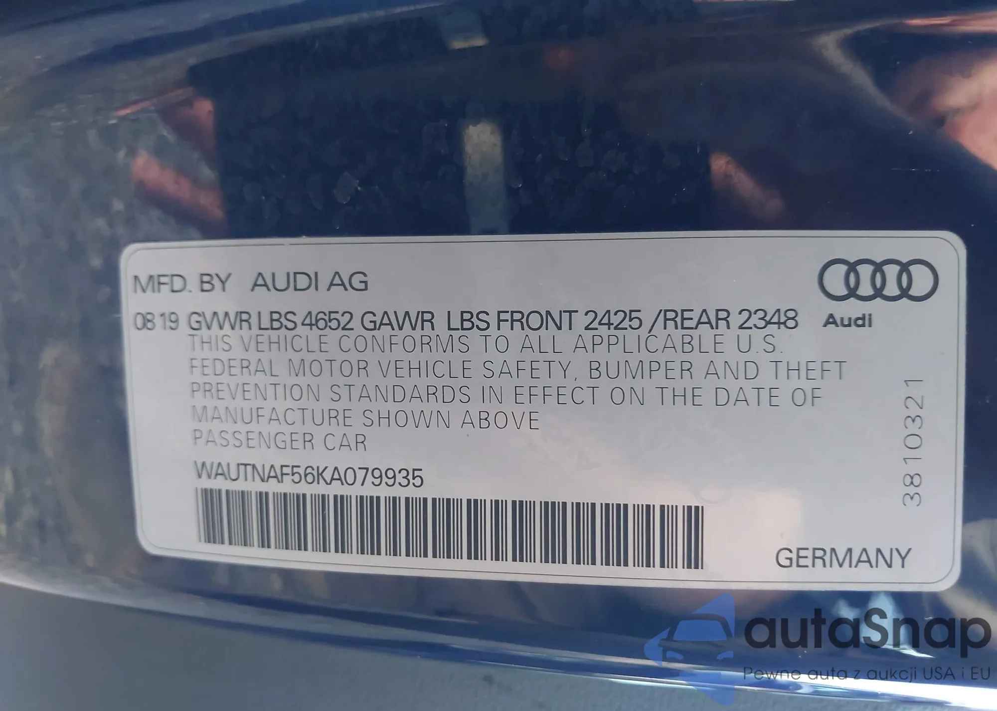 • VIN WAUTNAF56KA079935
