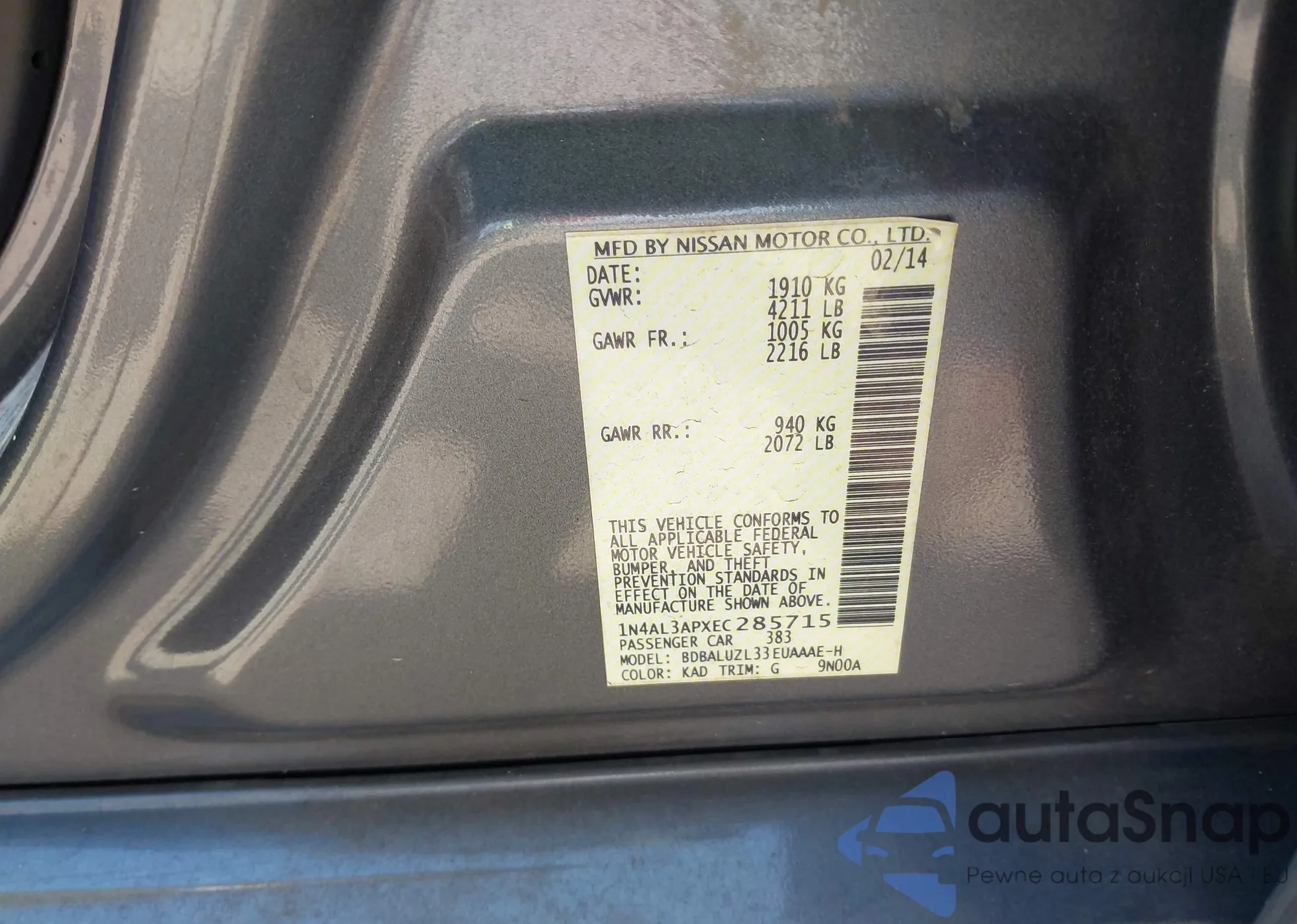 LOT: 42777471 VIN: JNKAY01E37M312712