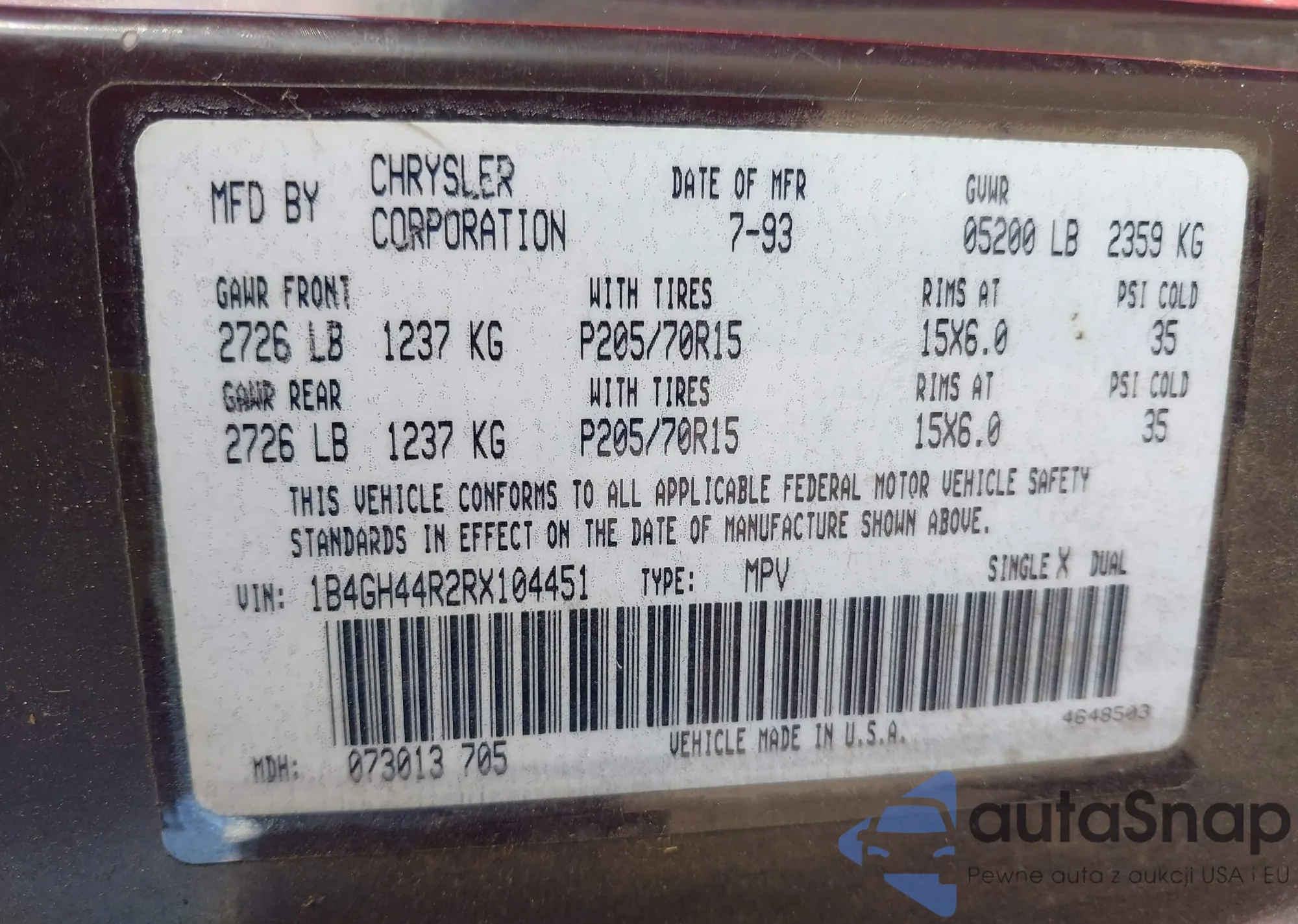 • VIN 1B4GH44R2RX104451