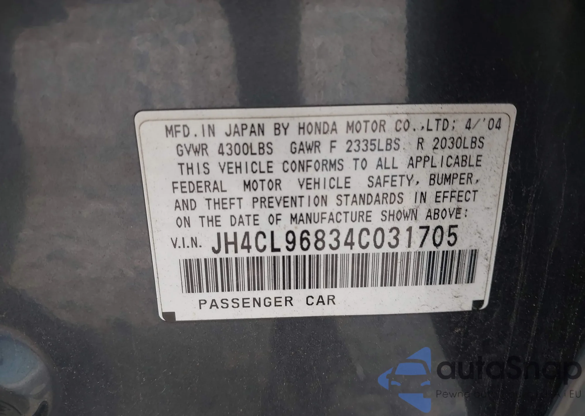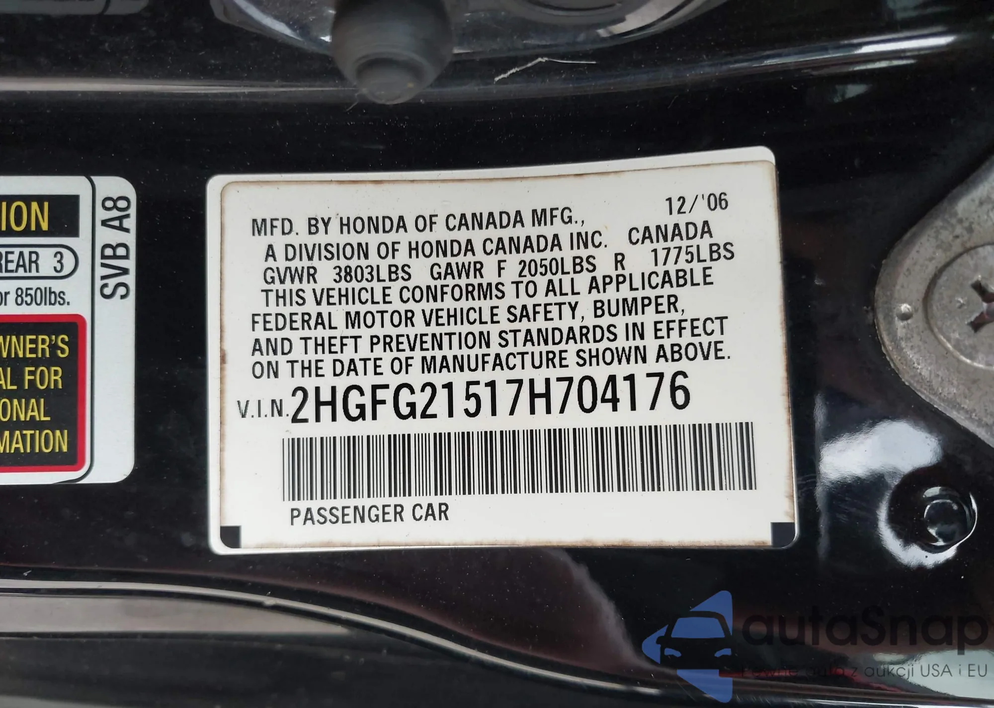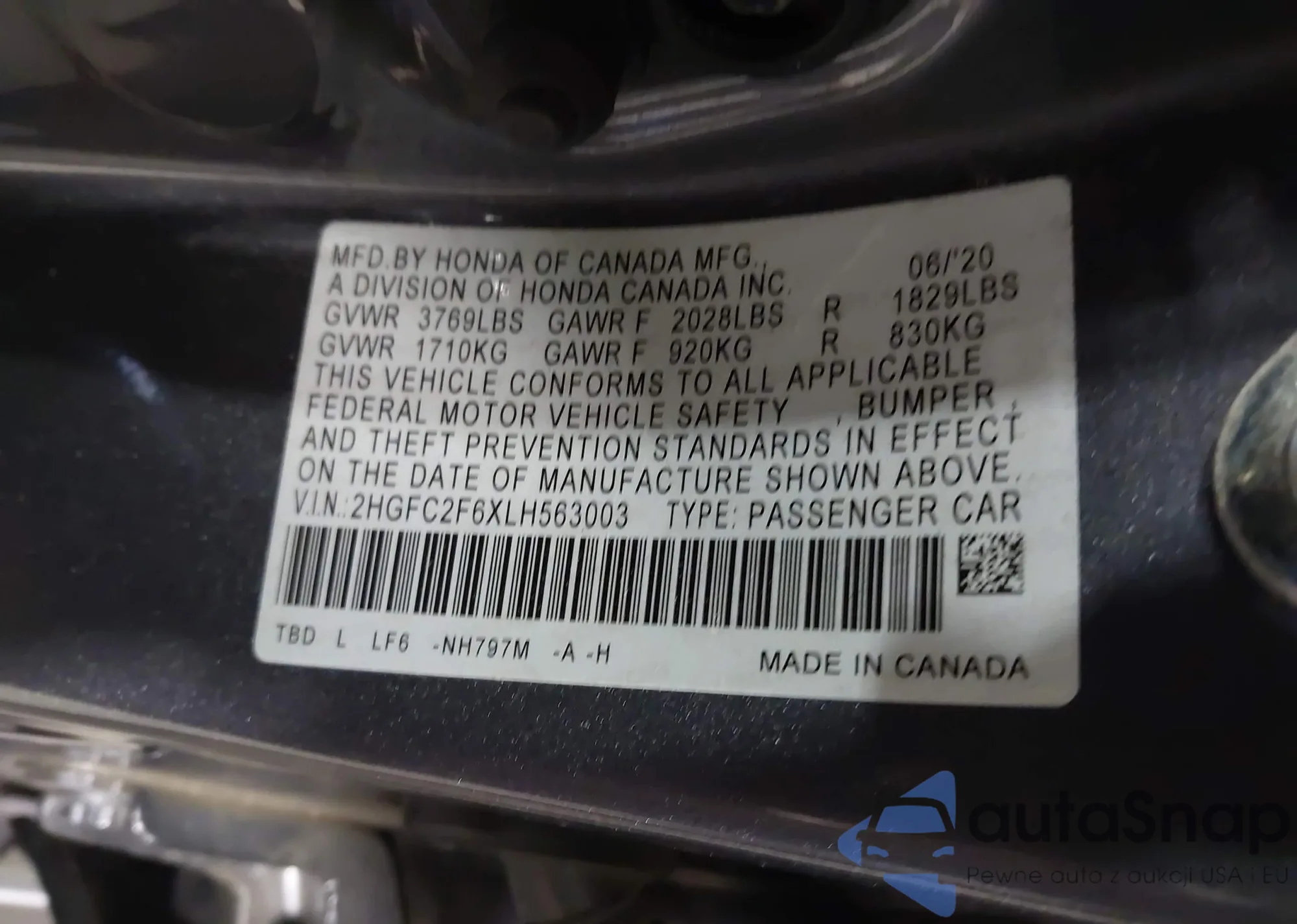LOT: 43181376 VIN: 2HGFC2F6XLH563003