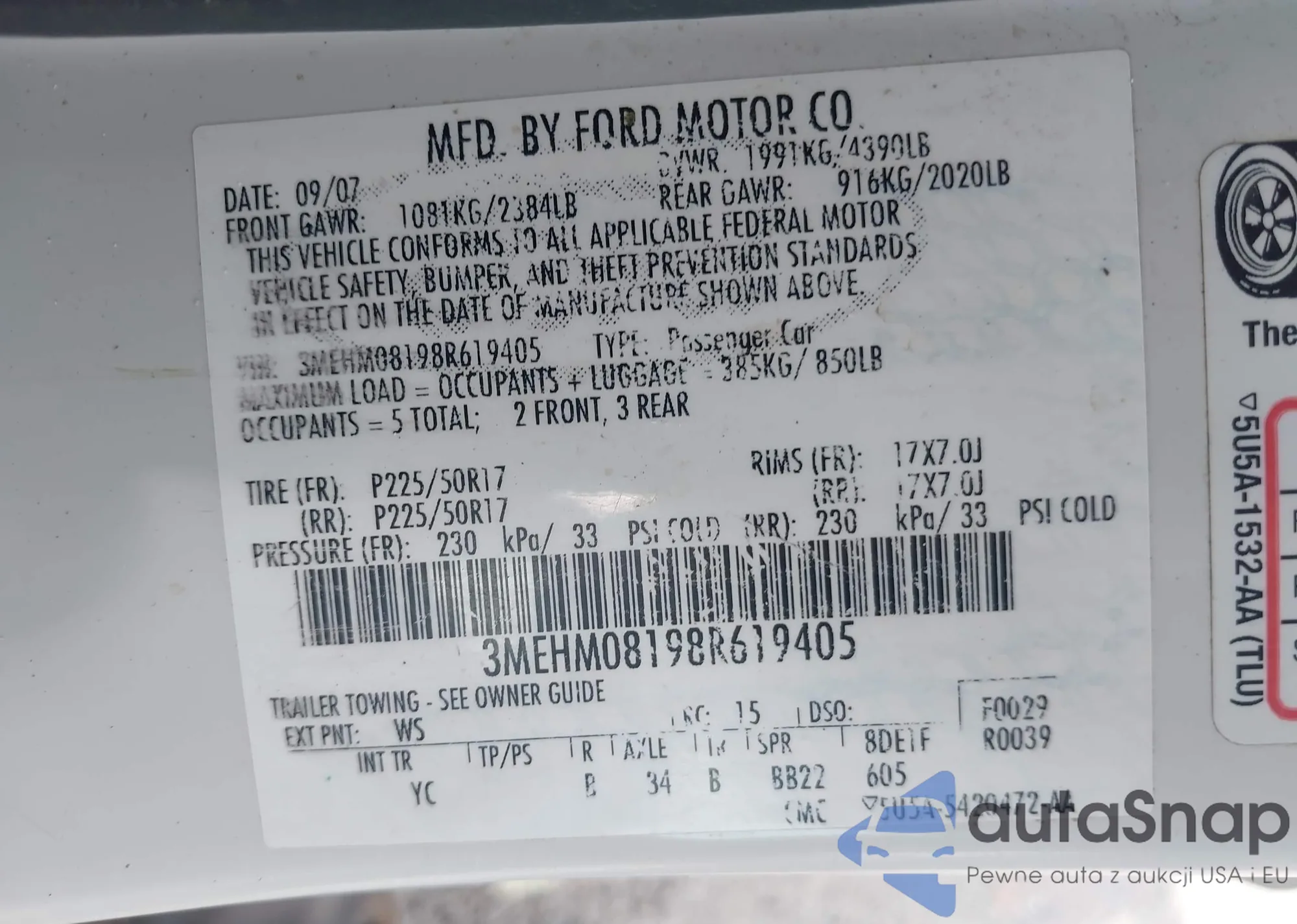 • VIN KNDCD3LD9N5532374