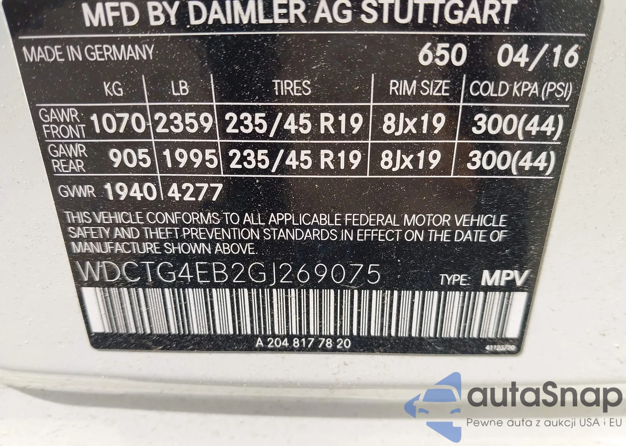 • VIN WDCTG4EB2GJ269075