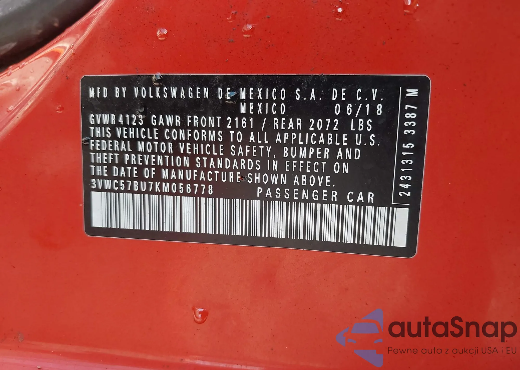• VIN 3VWC57BU7KM056778
