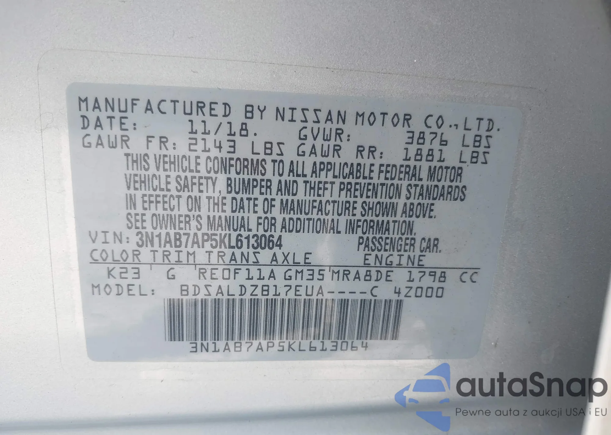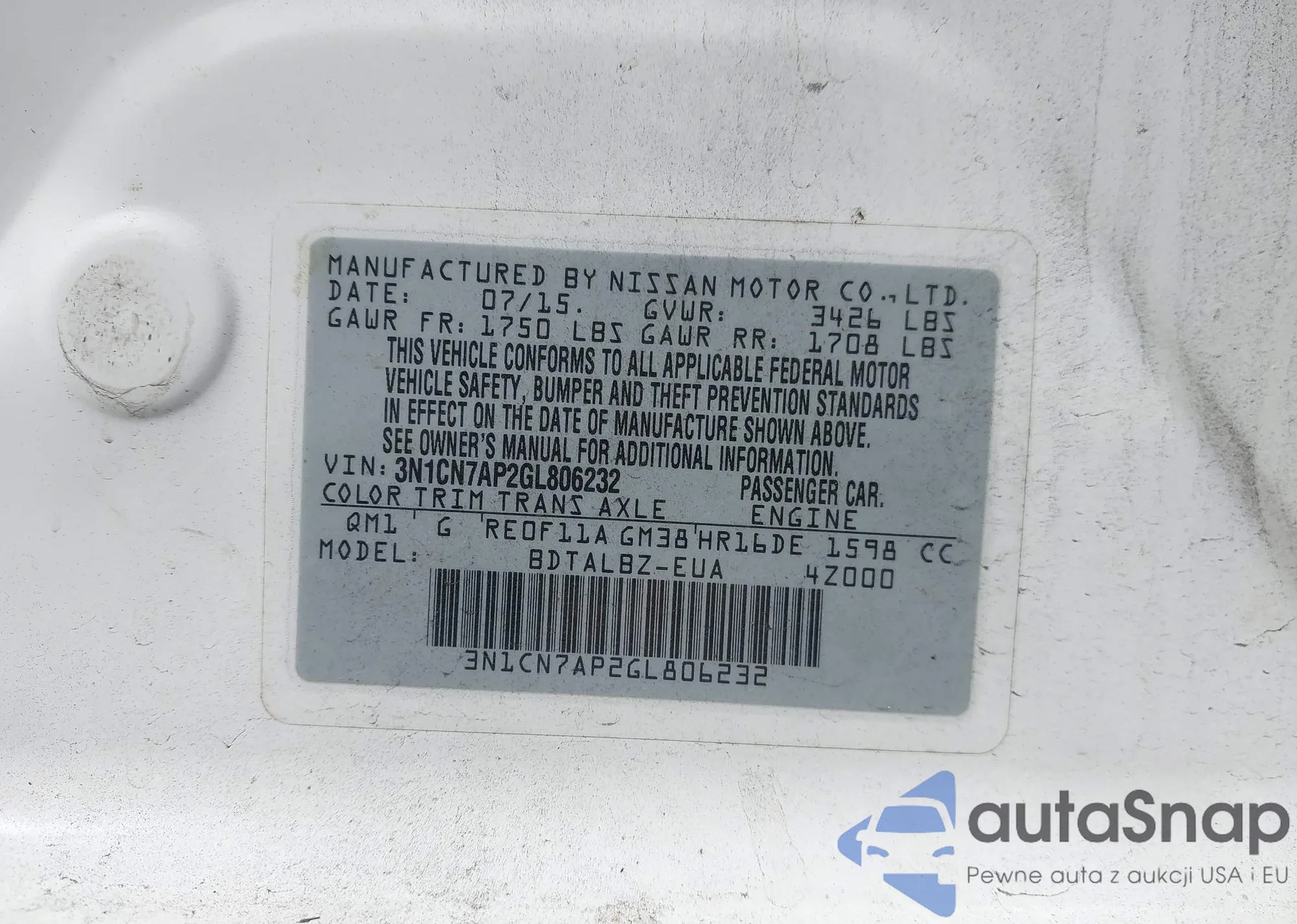 • VIN 3N1CN7AP2GL806232