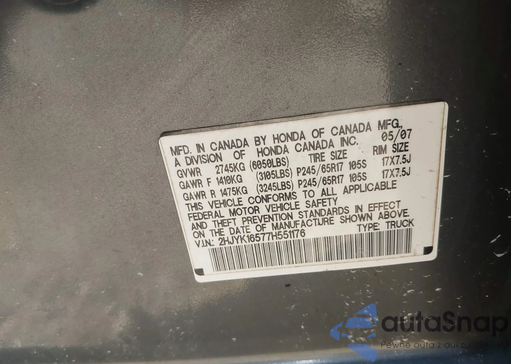 • VIN 3CZRU6H71GM705391