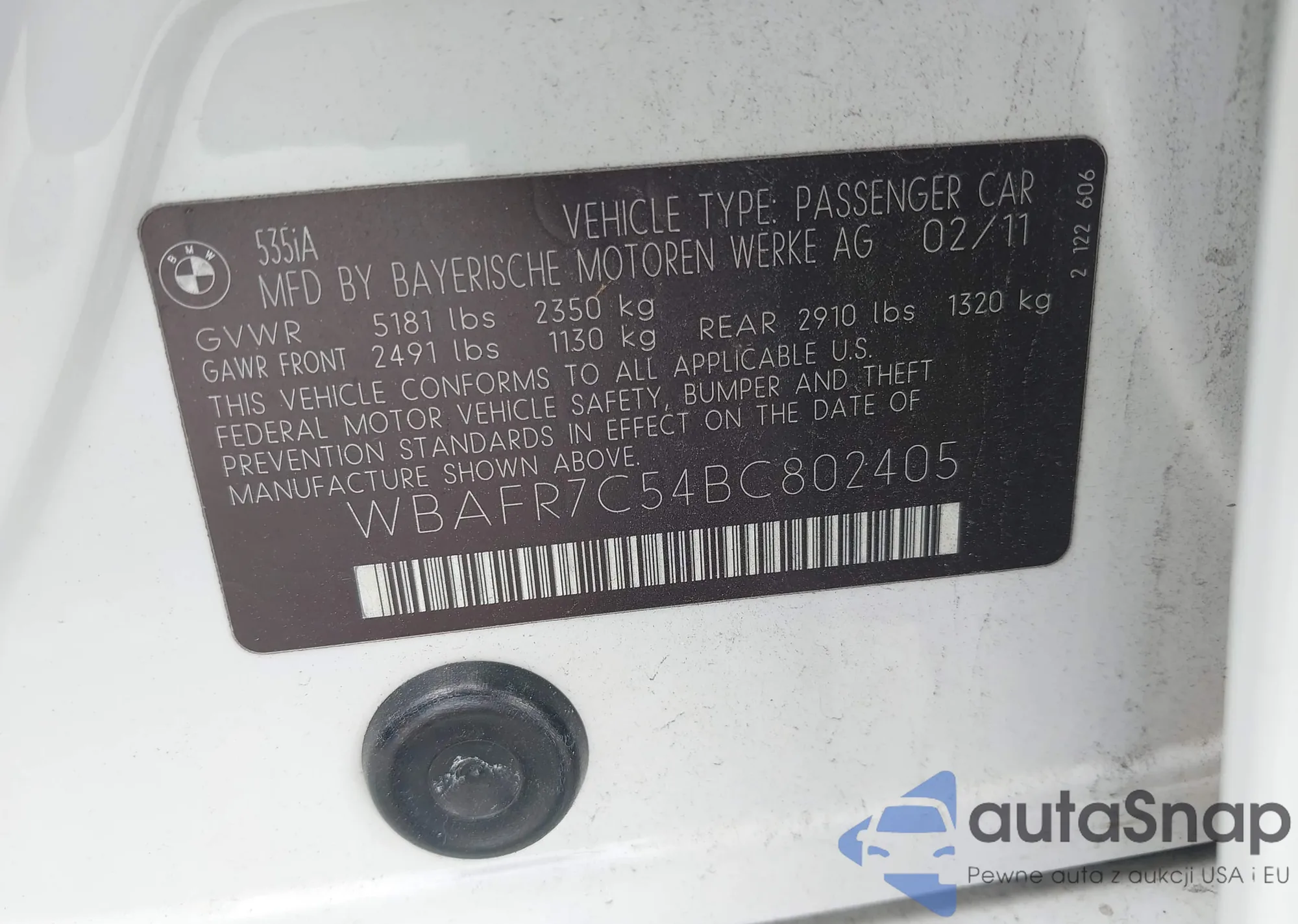 • VIN WBAFR7C54BC802405