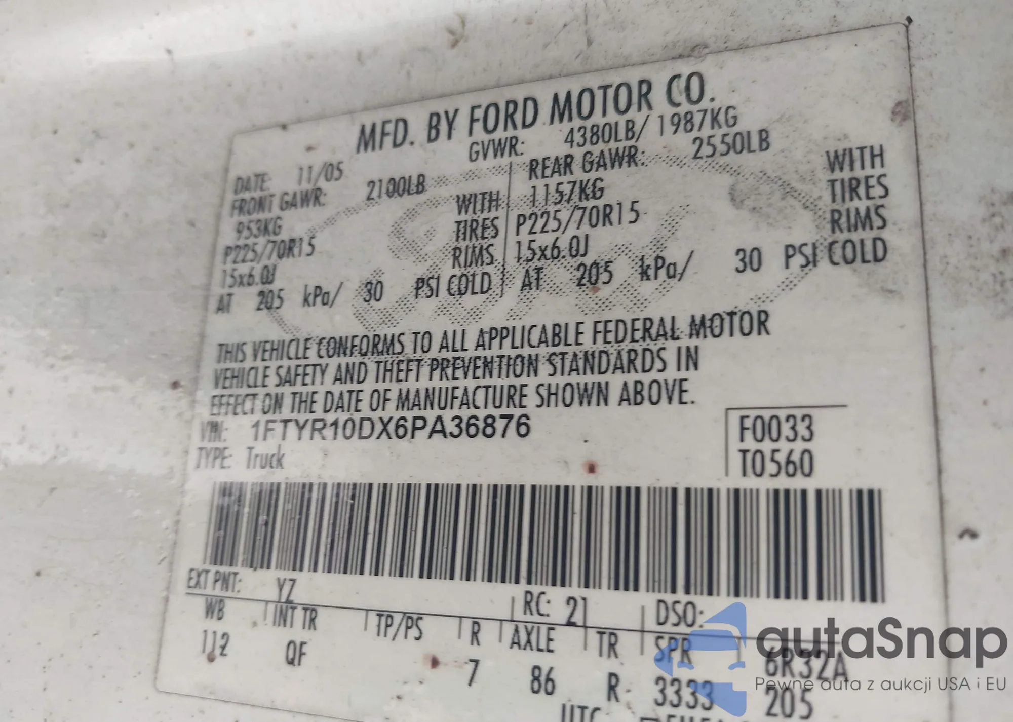 • VIN 1FTYR10DX6PA36876