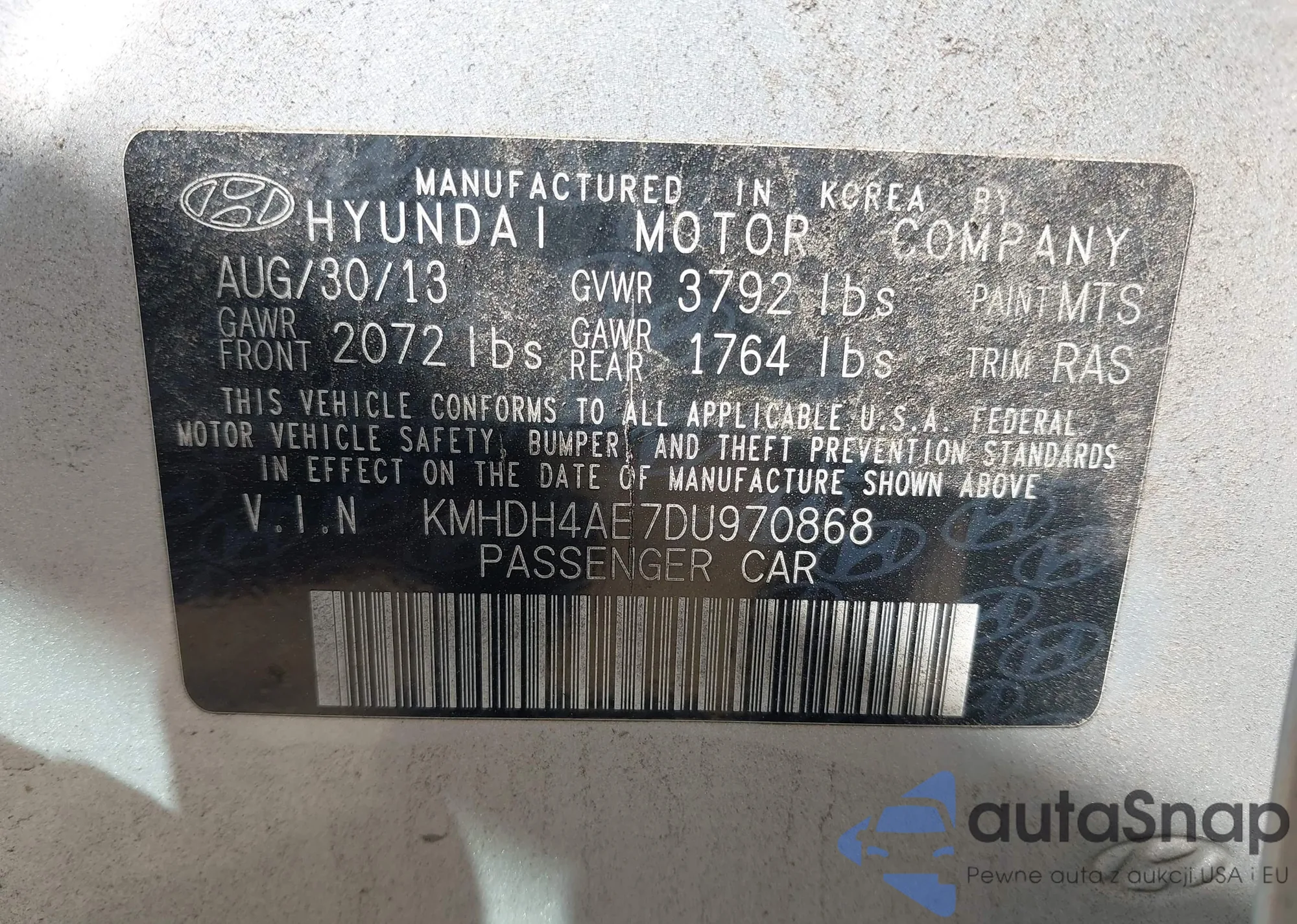LOT: 42987914 VIN: KMHDH4AE7DU970868