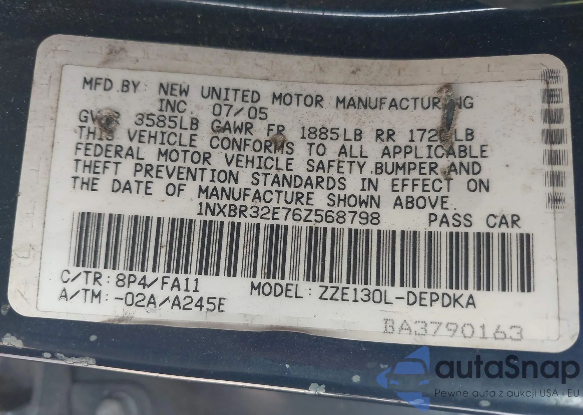 LOT: 43036305 VIN: JTDKN3DU3A0078816