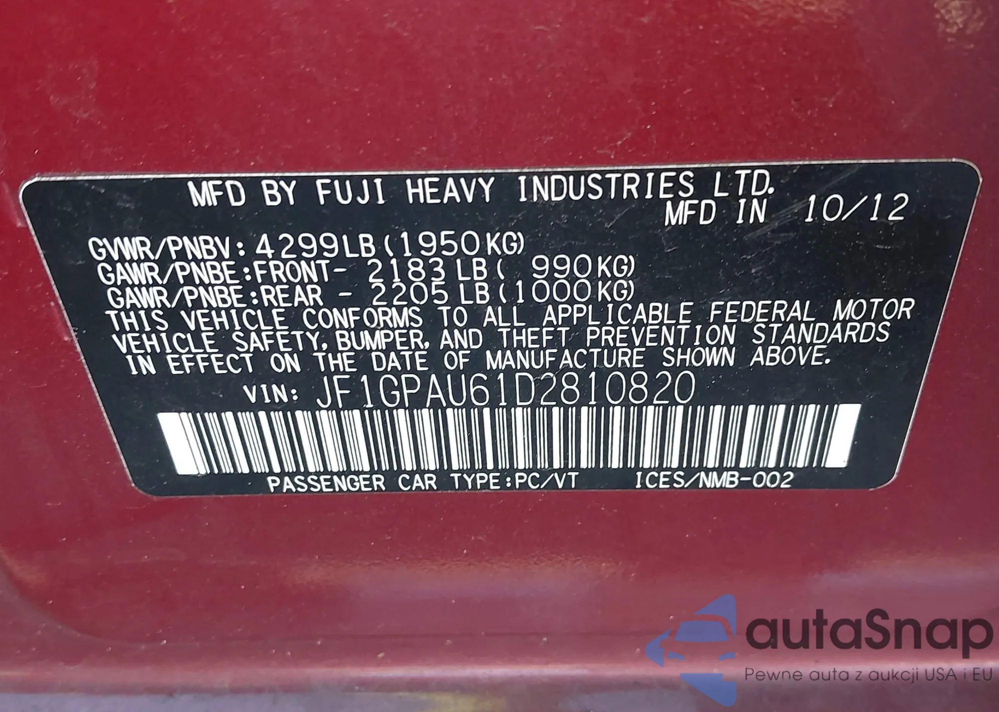 • VIN JF1GPAU61D2810820