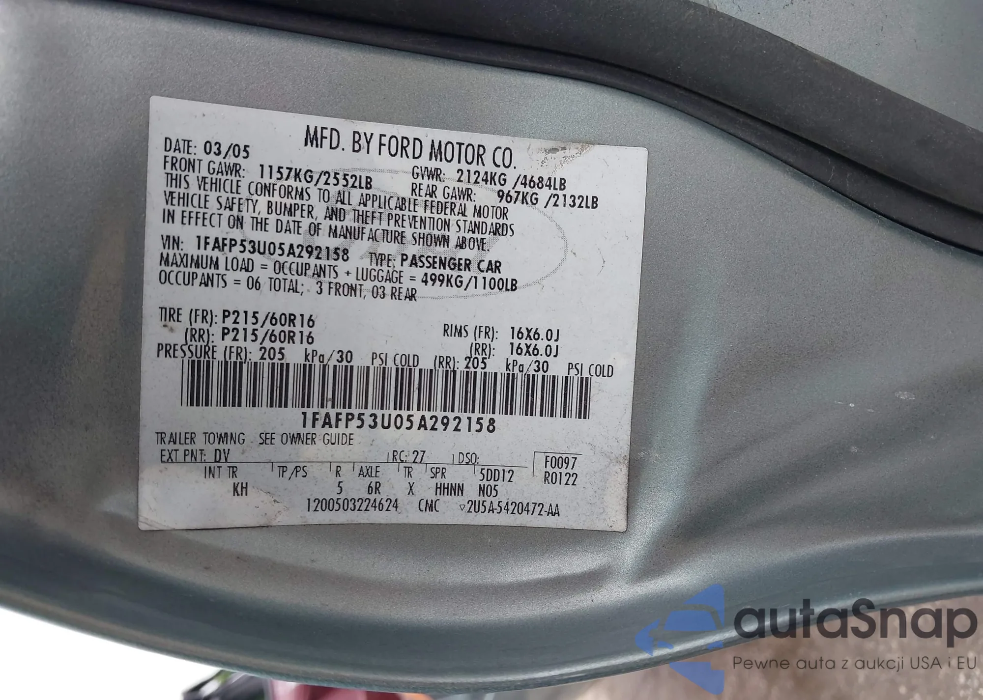 • VIN 2FMZA51U5WBD25281