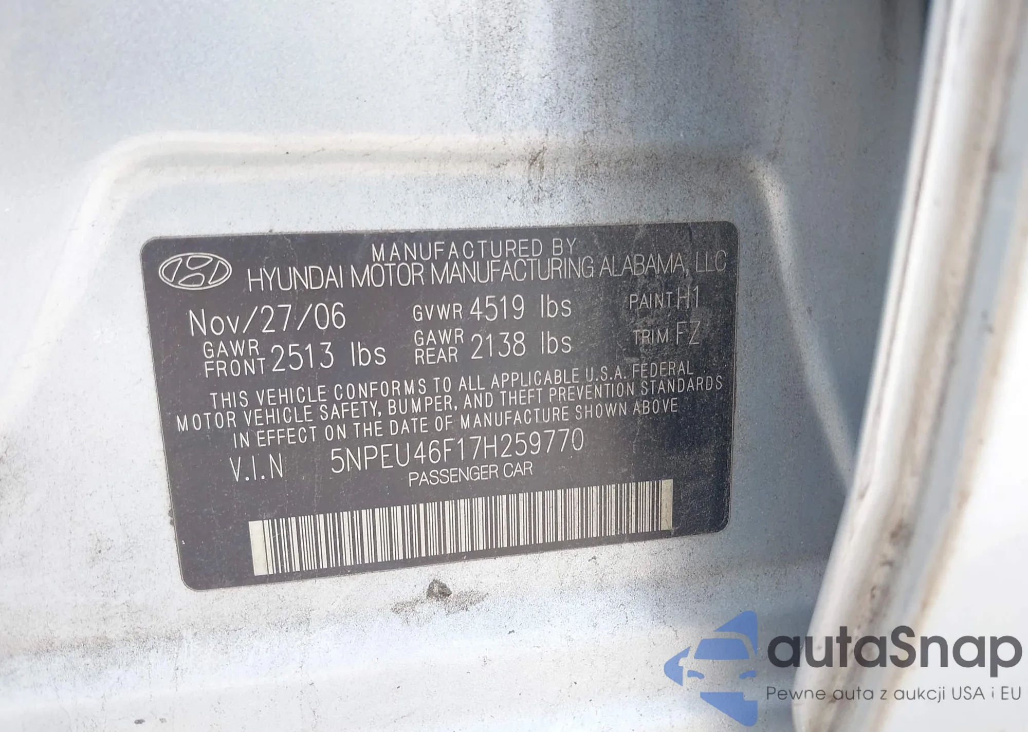 • VIN 5NPEU46F17H259770
