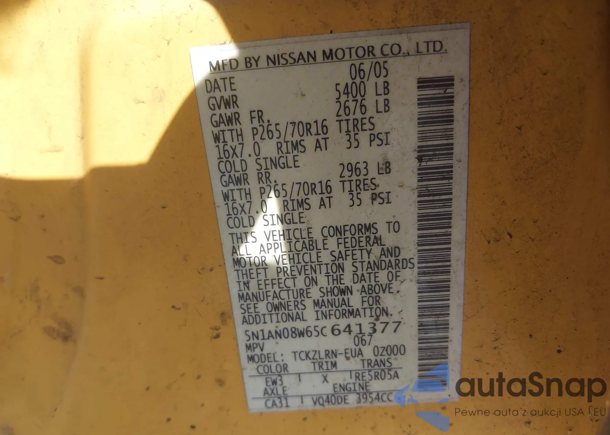 • VIN 5N1AN08W65C641377