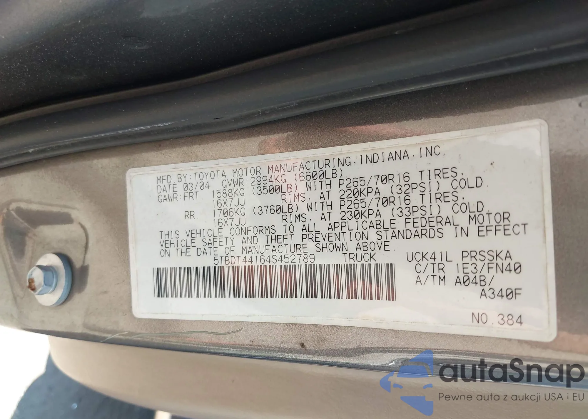 • VIN 5TBDT44164S452789