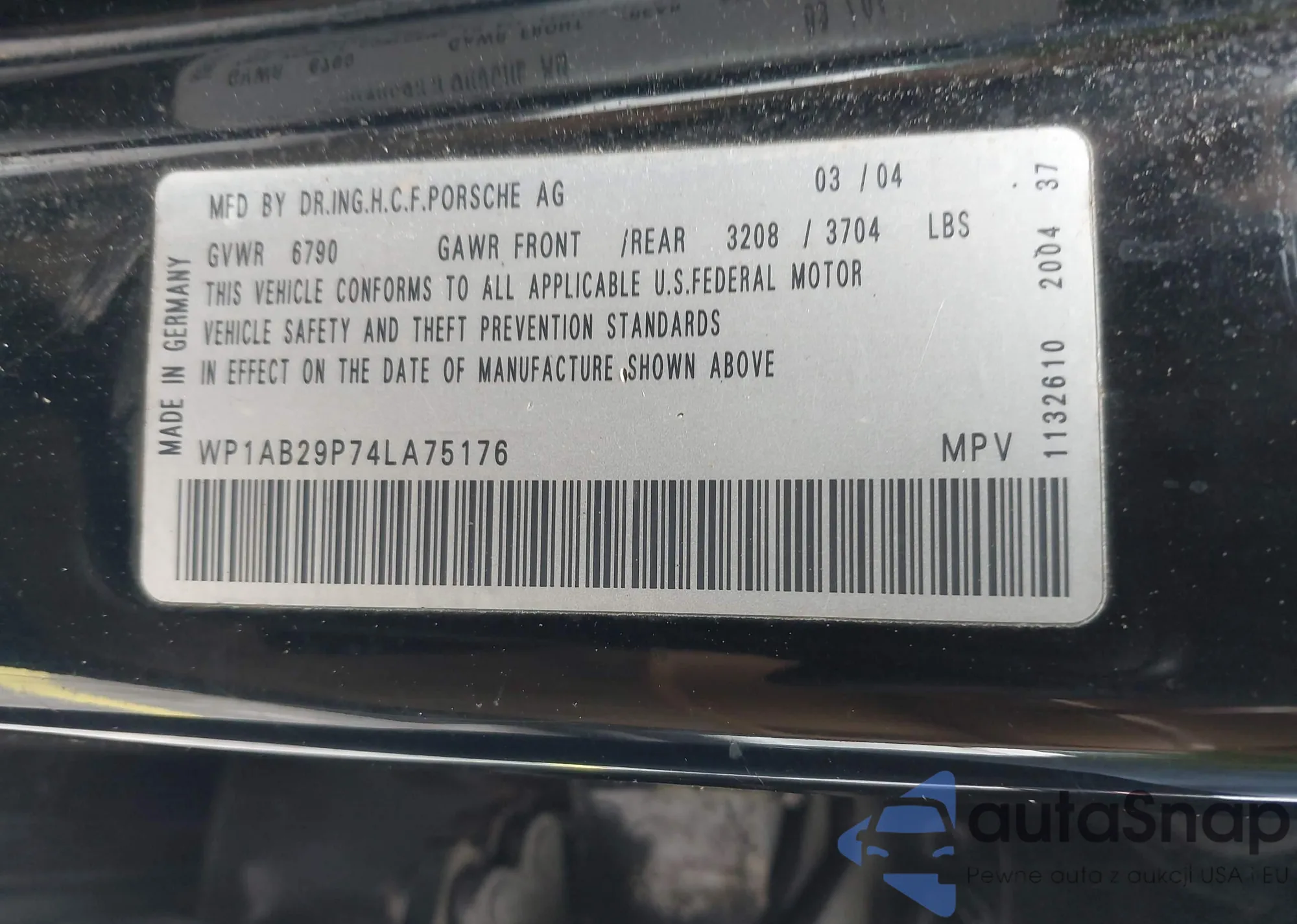 • VIN WP1AB29P74LA75176
