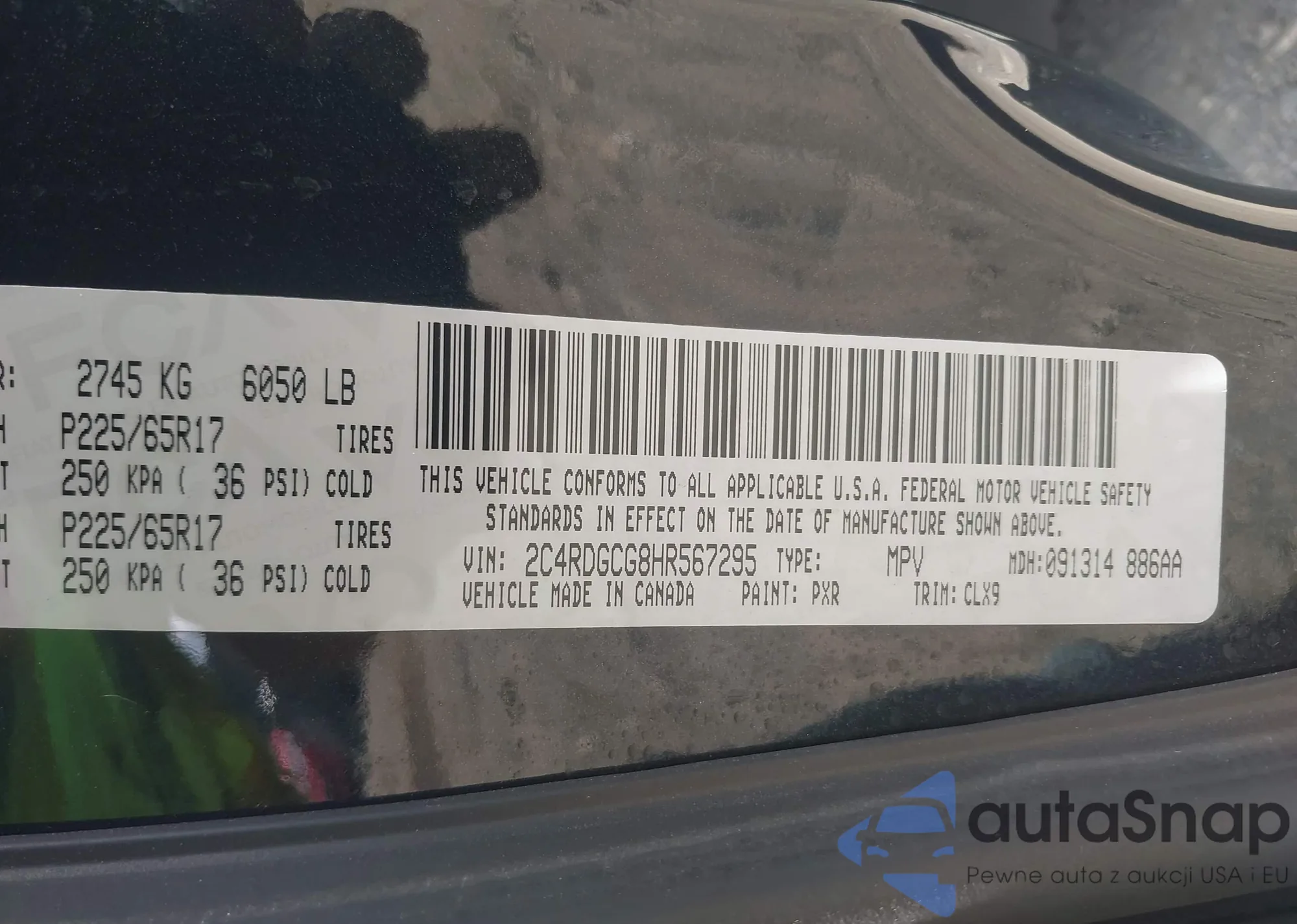 • VIN 2C4RDGCG8HR567295