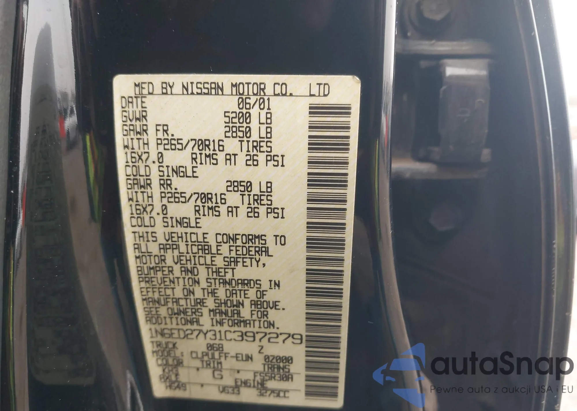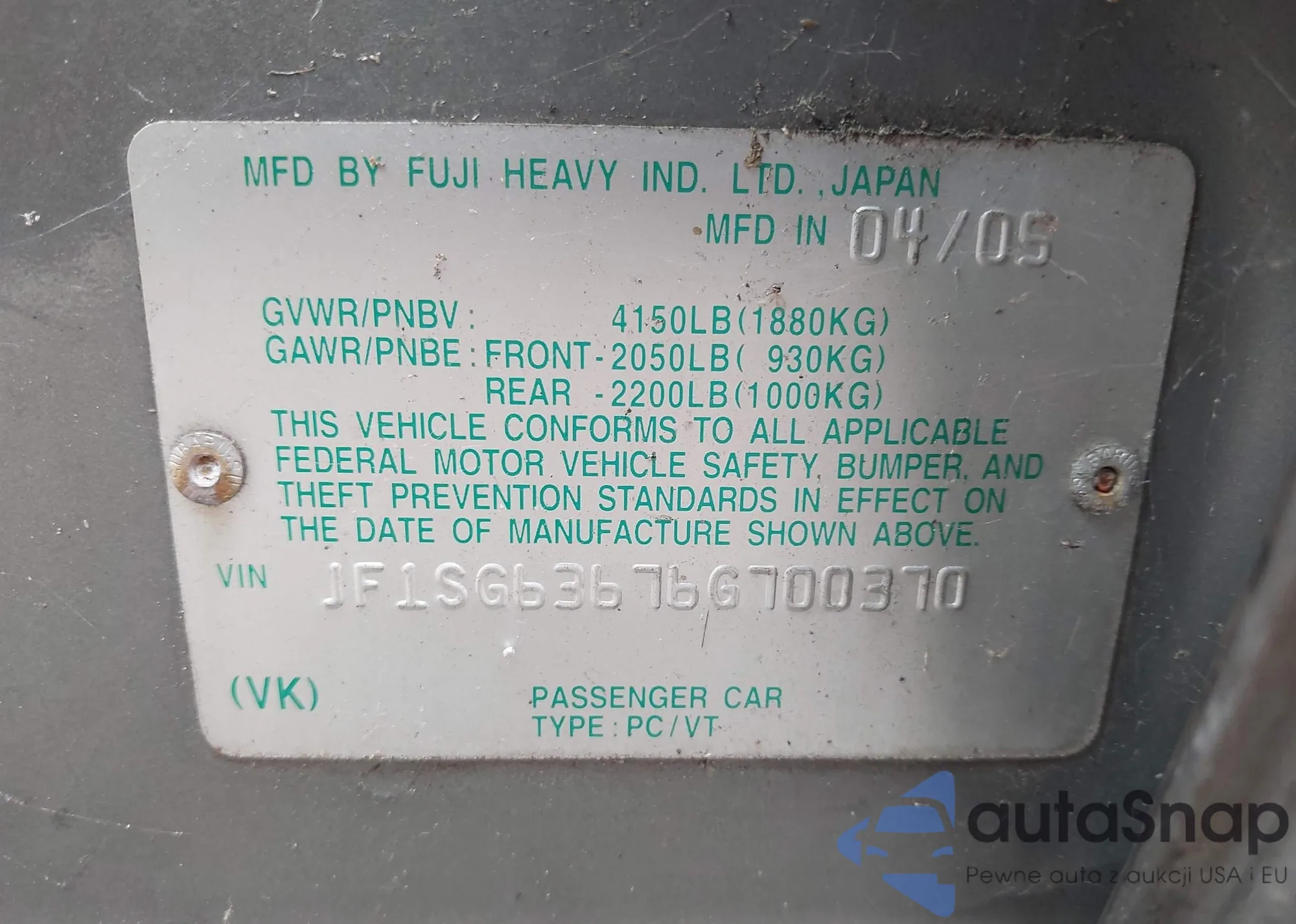 • VIN JF1SG63676G700370
