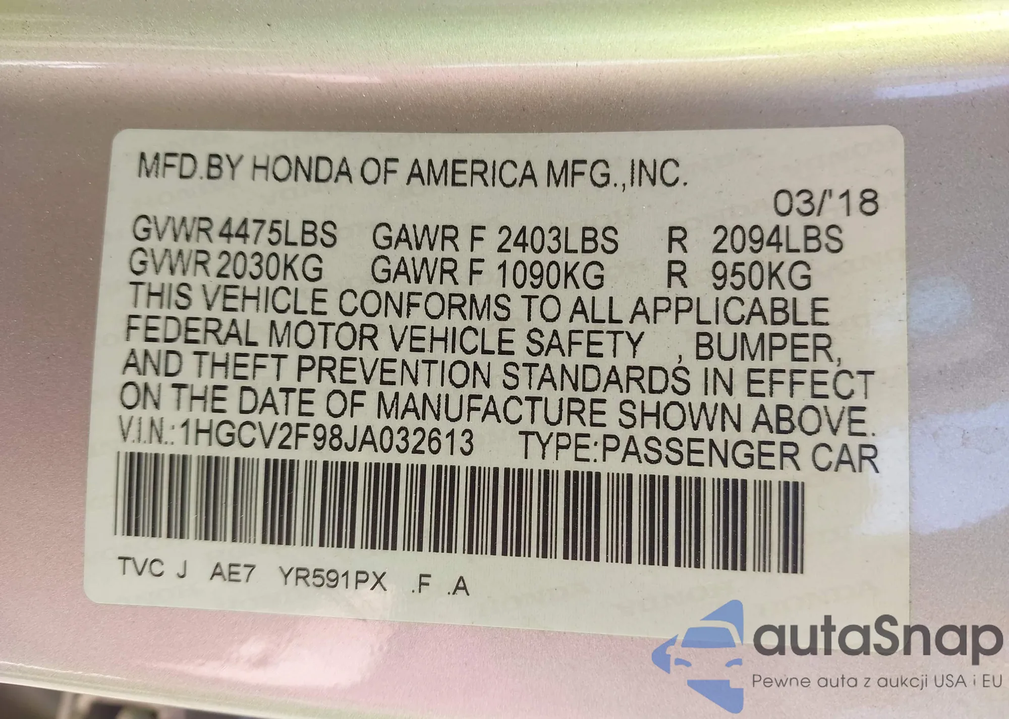LOT: 43102480 VIN: 2HNYD2H21BH523836