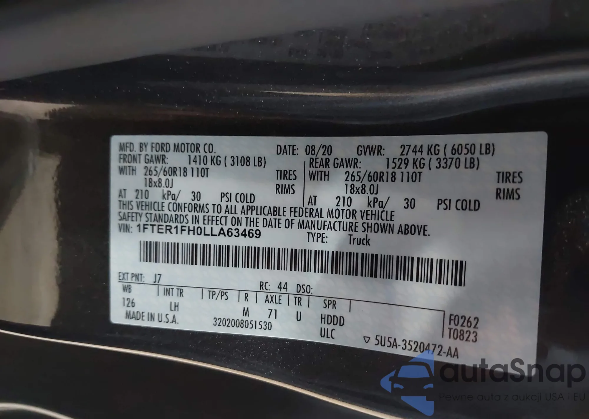 LOT: 42728343 VIN: WA1FVAF14LD005386
