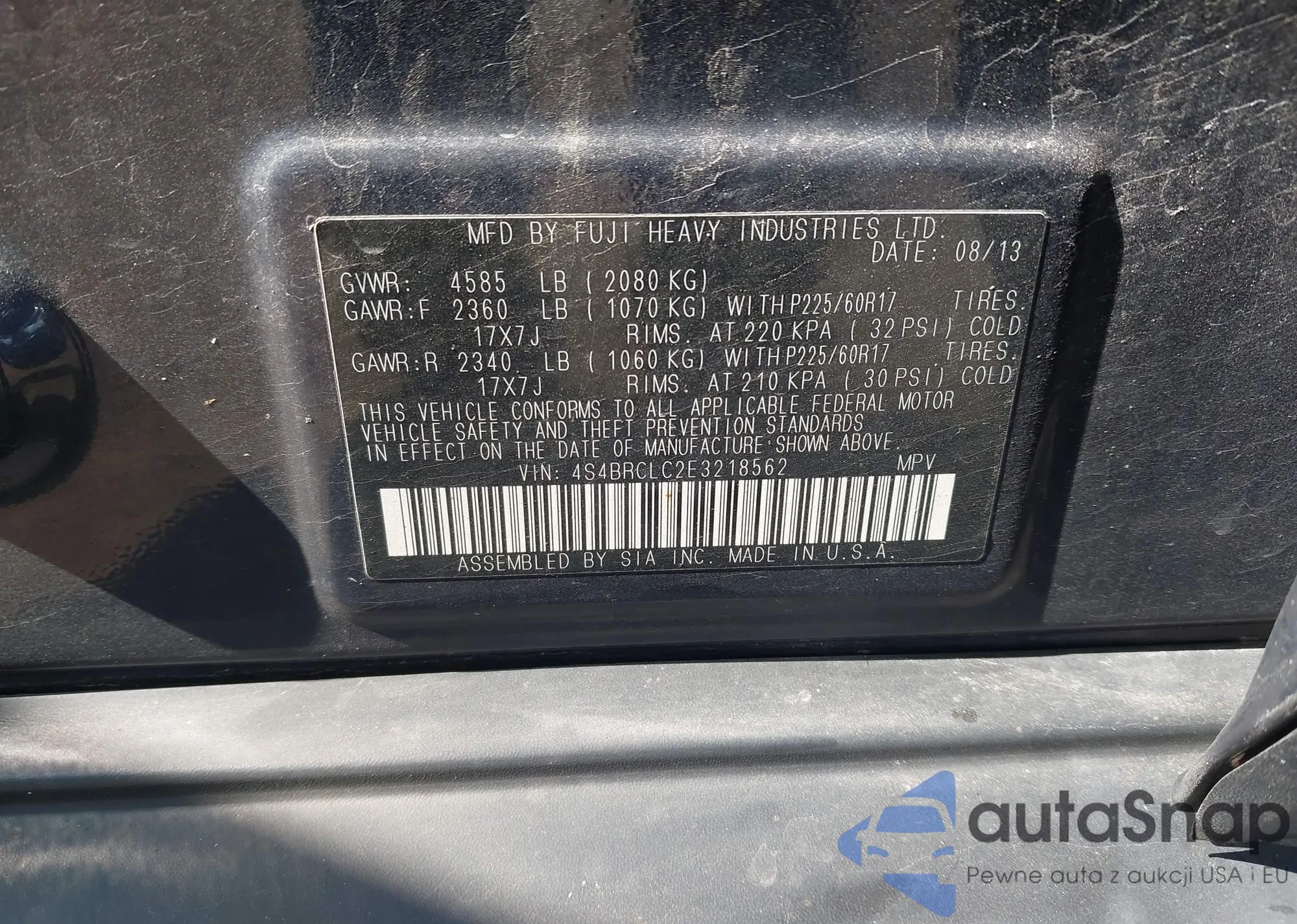 LOT: 43244257 VIN: 4S4BRCLC2E3218562