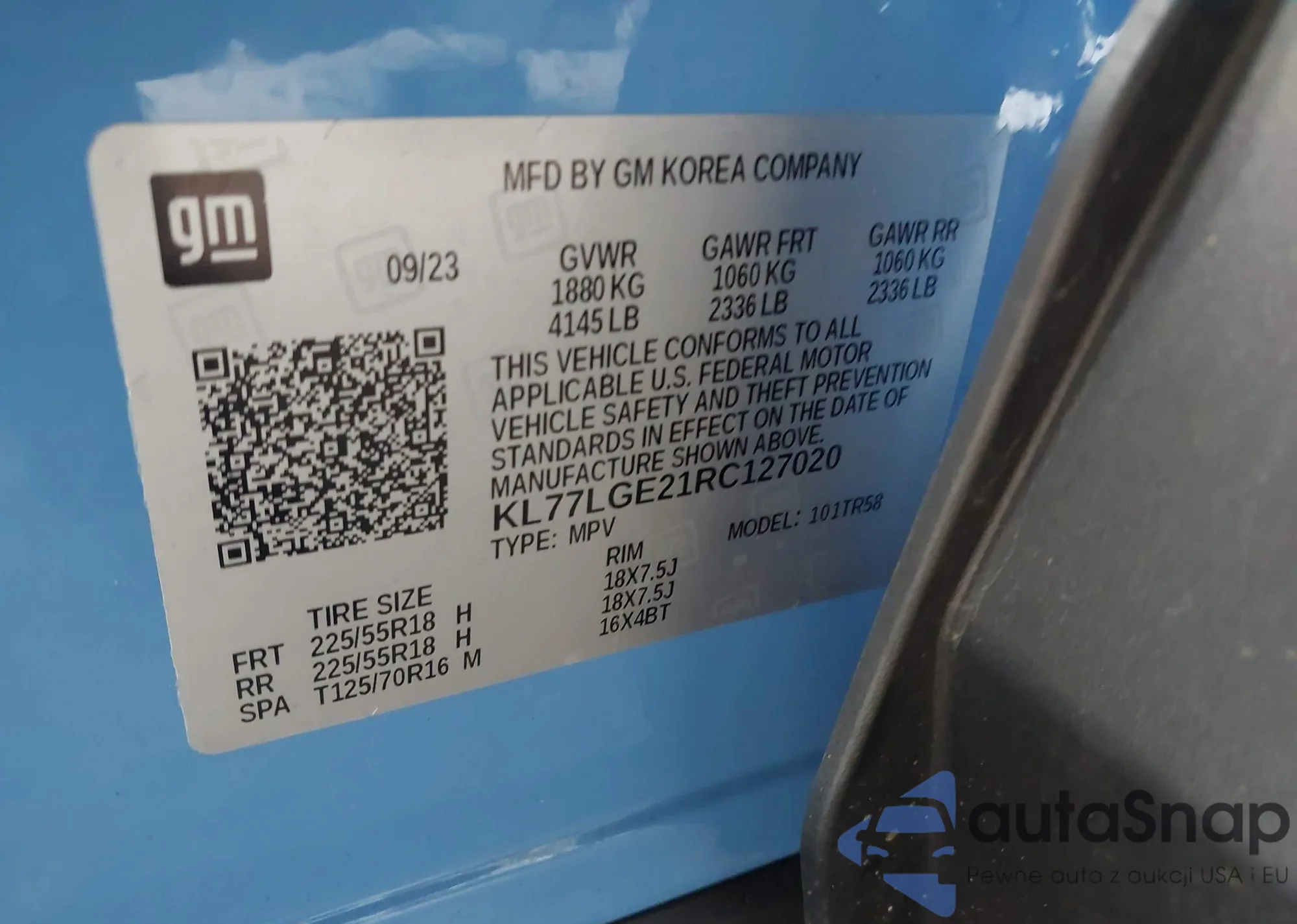 • VIN KL77LGE21RC127020
