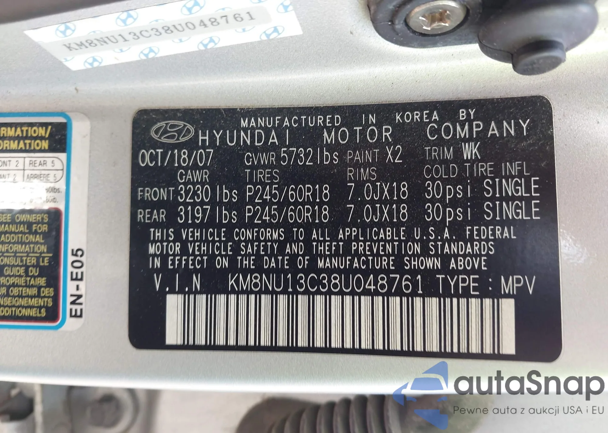 • VIN KM8NU13C38U048761