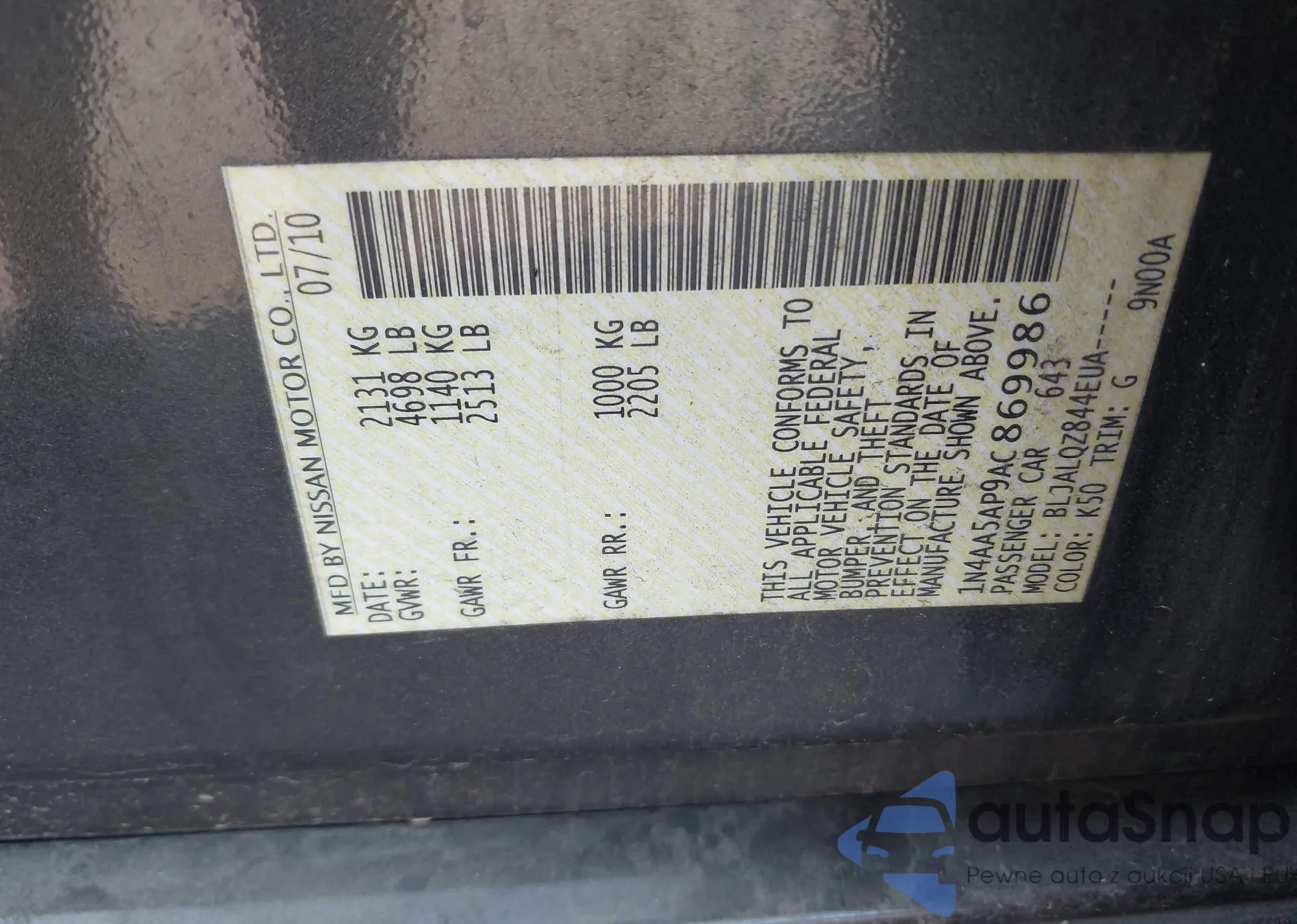 LOT: 43272274 VIN: 1N-4AA5AP9AC86998