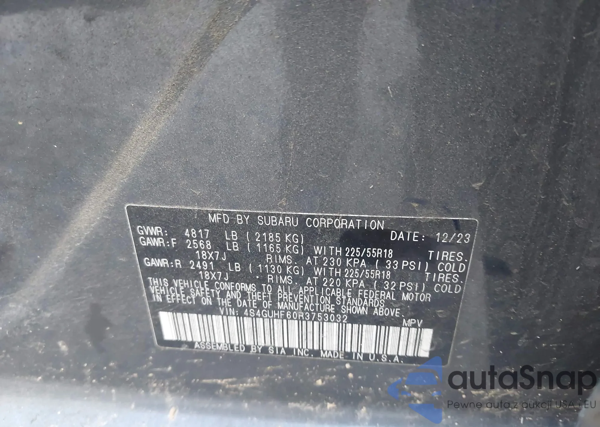 • VIN 4S4GUHF60R3753032