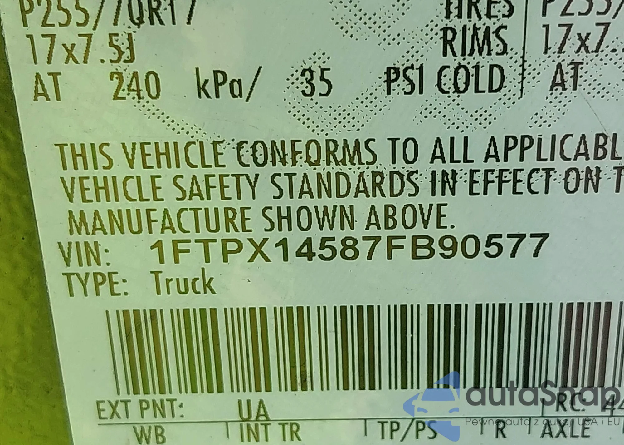 • VIN 1FTPX14587FB90577