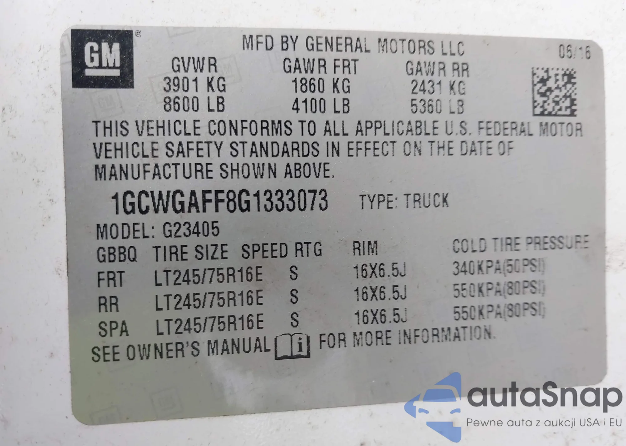 • VIN 1GCWGAFF8G1333073