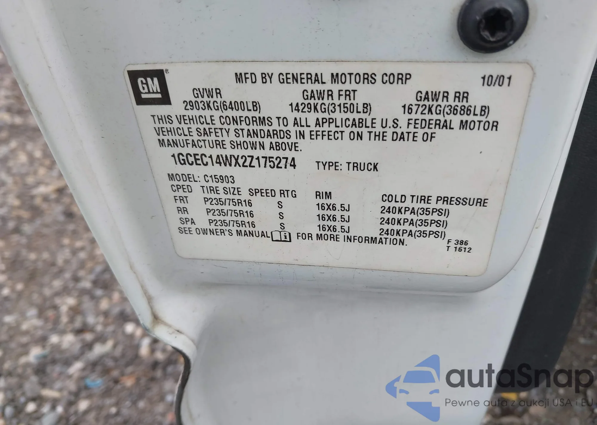 • VIN 1GCEC14WX2Z175274