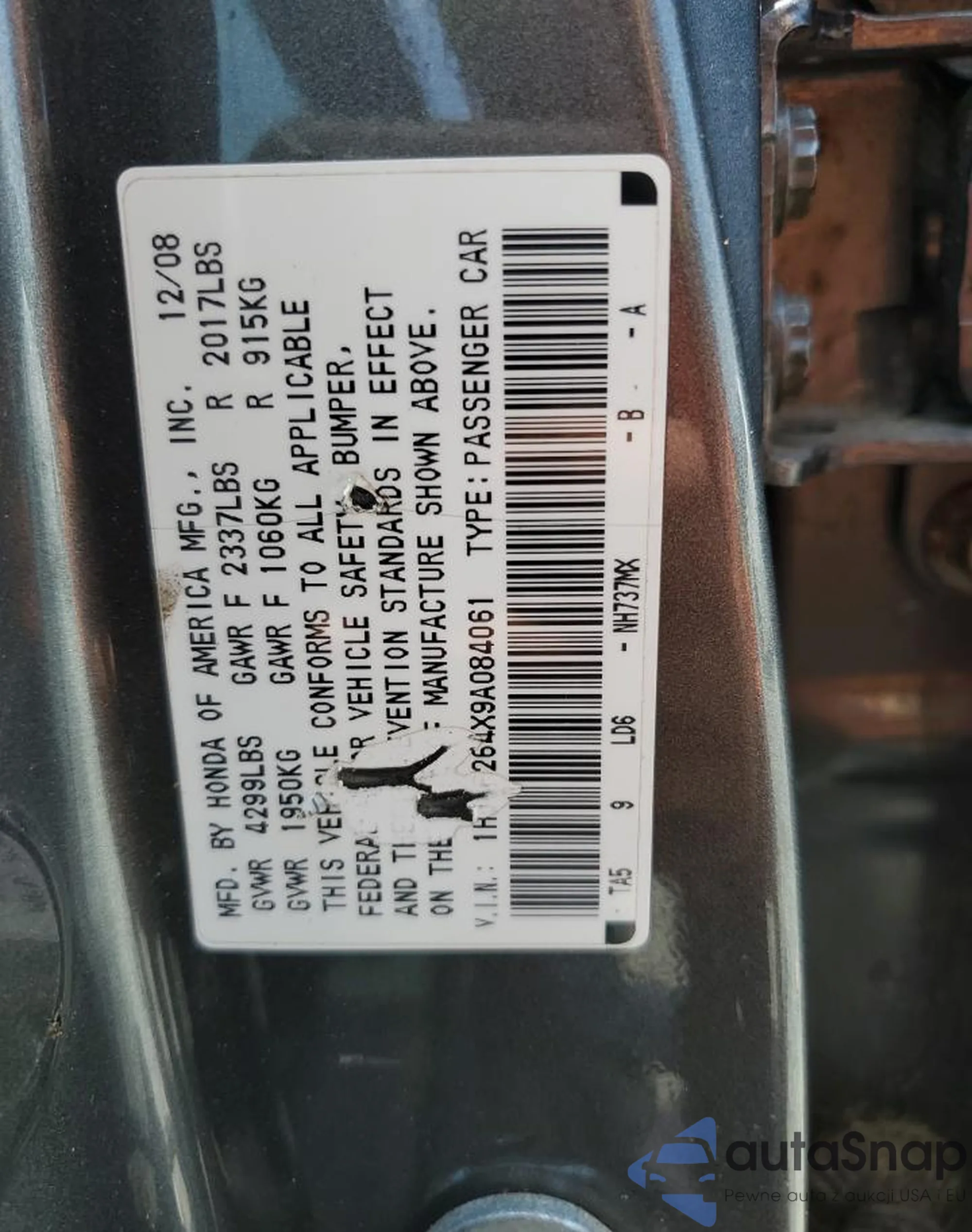 LOT: 58889365 VIN: 1HGCP264X9A084061