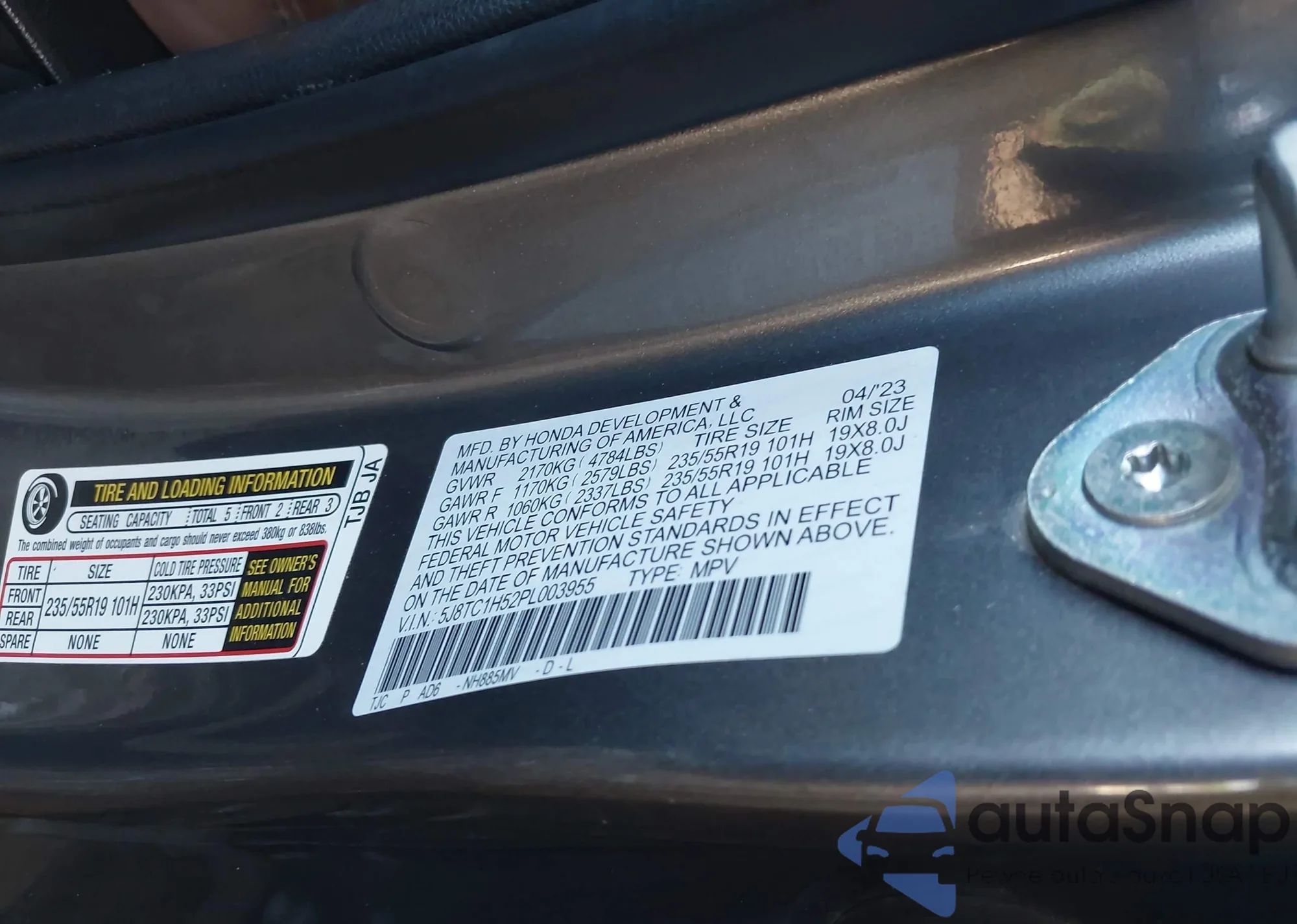 • VIN 5J8TC1H52PL003955