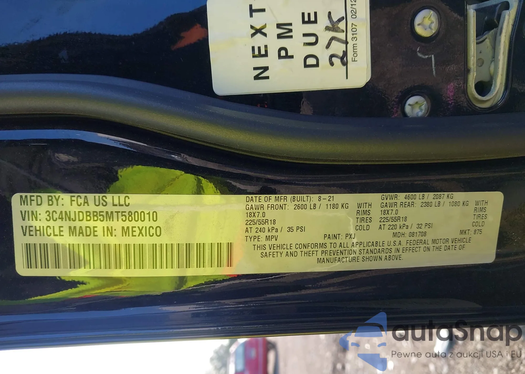 LOT: 42670565 VIN: 3C4NJDBB5MT580010