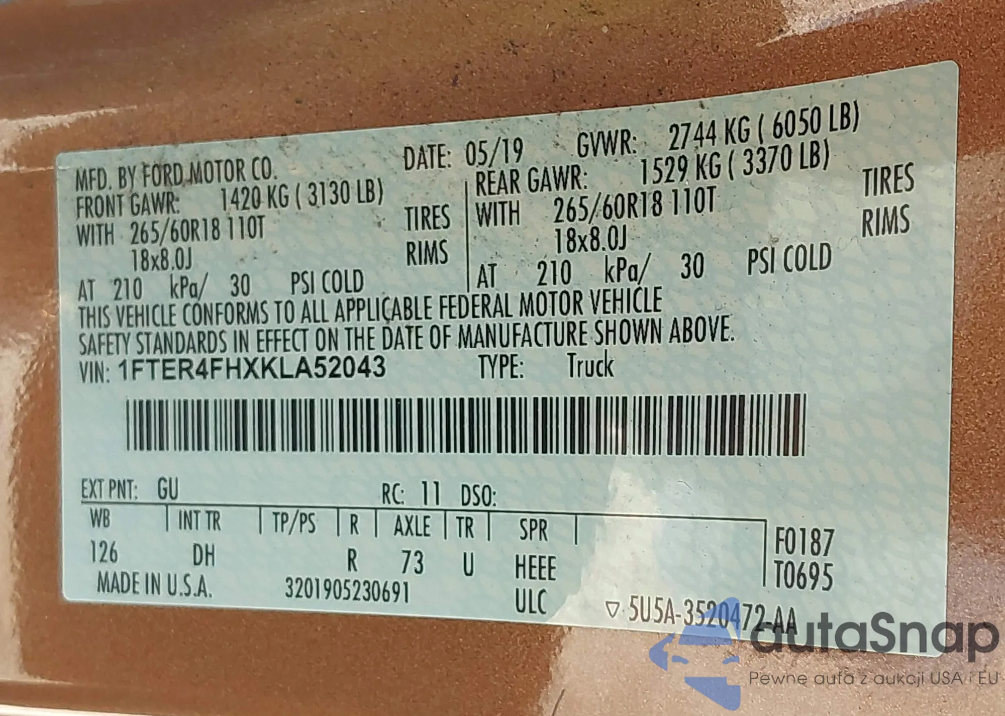 LOT: 42769207 VIN: 1FTER4FHXKLA52043
