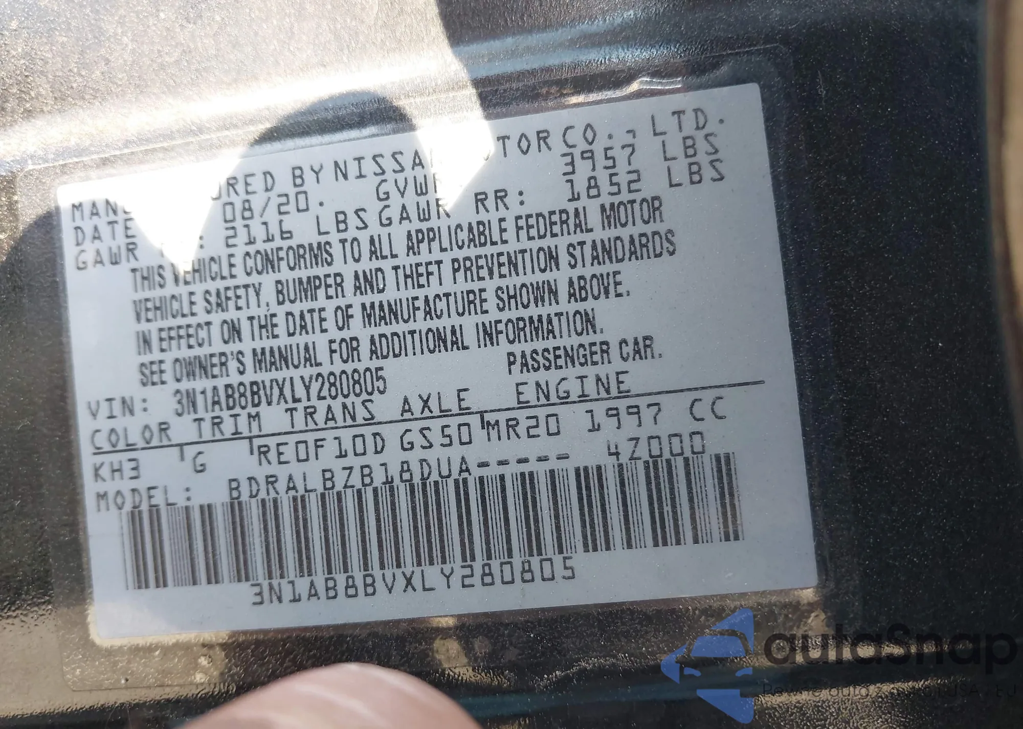 • VIN 3N1AB8BVXLY280805