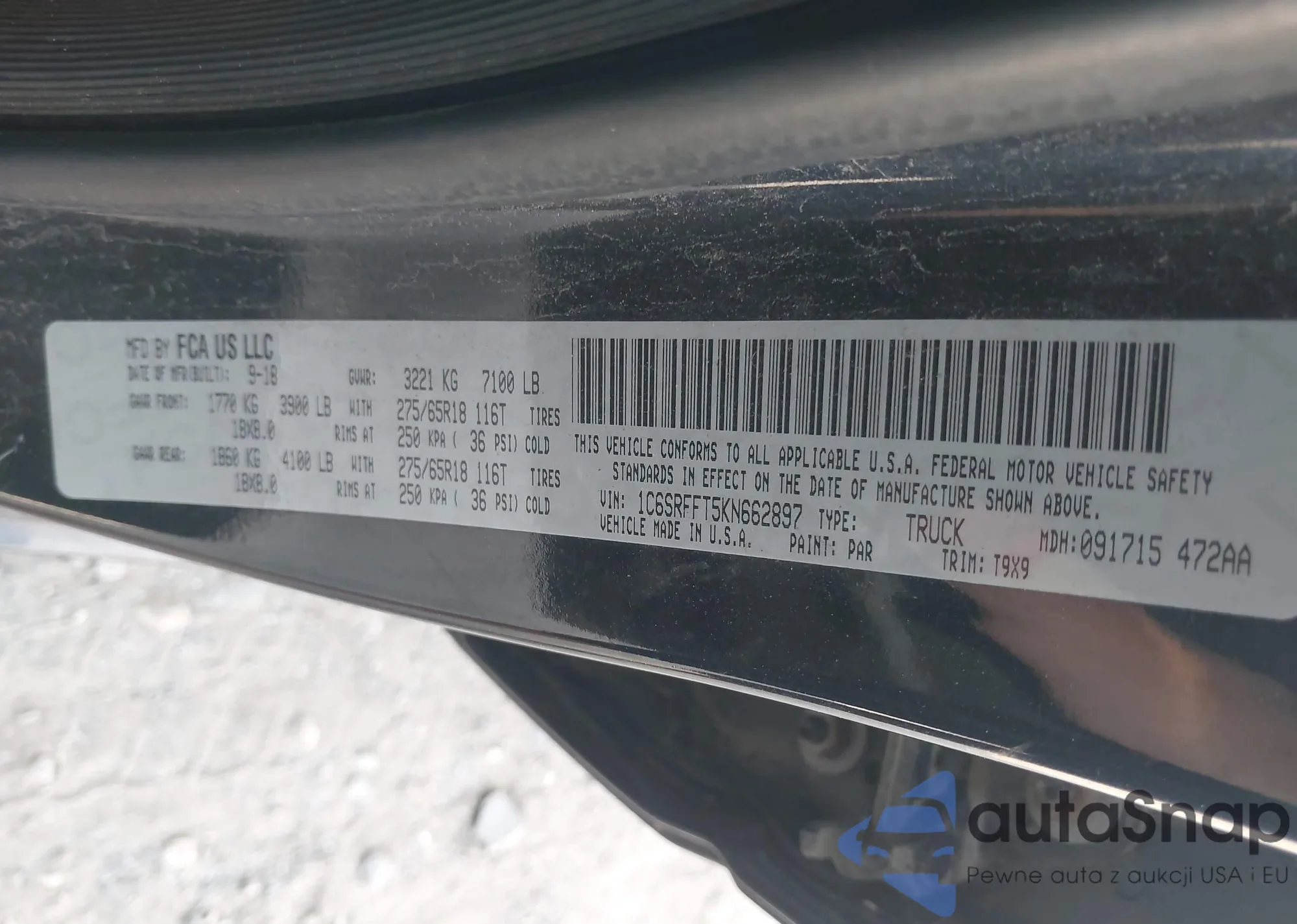 LOT: 42924287 VIN: 1C6SRFFT5KN662897