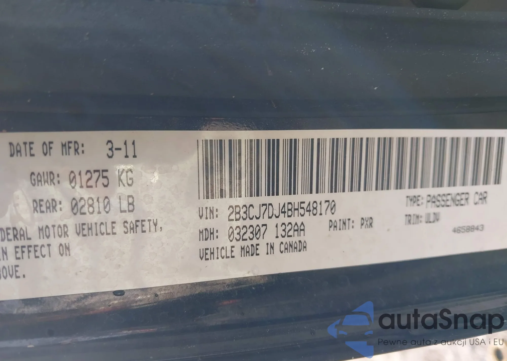 • VIN 2B3CJ7DJ4BH548170