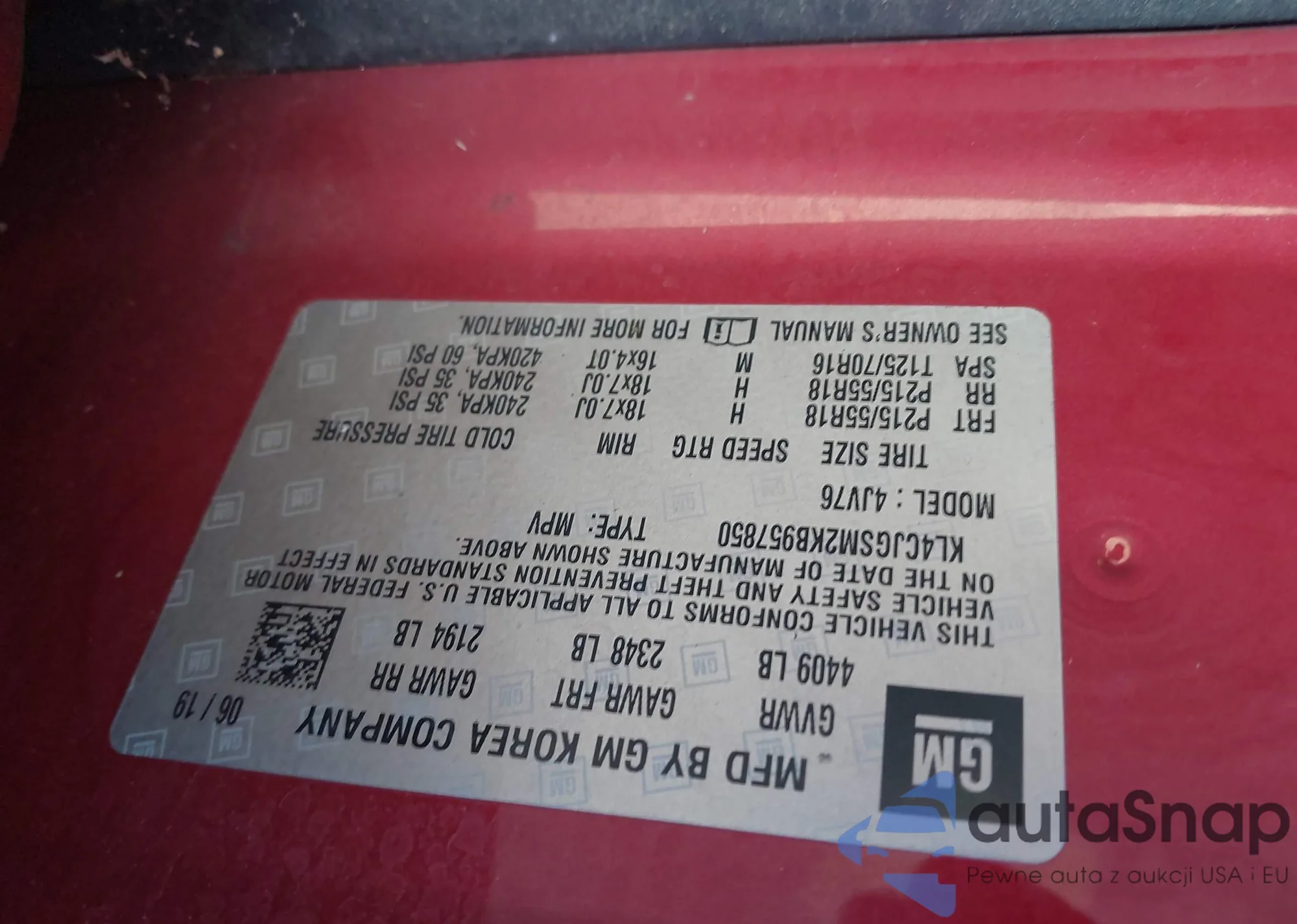 LOT: 43117740 VIN: 3N1AB7AP4KY265339