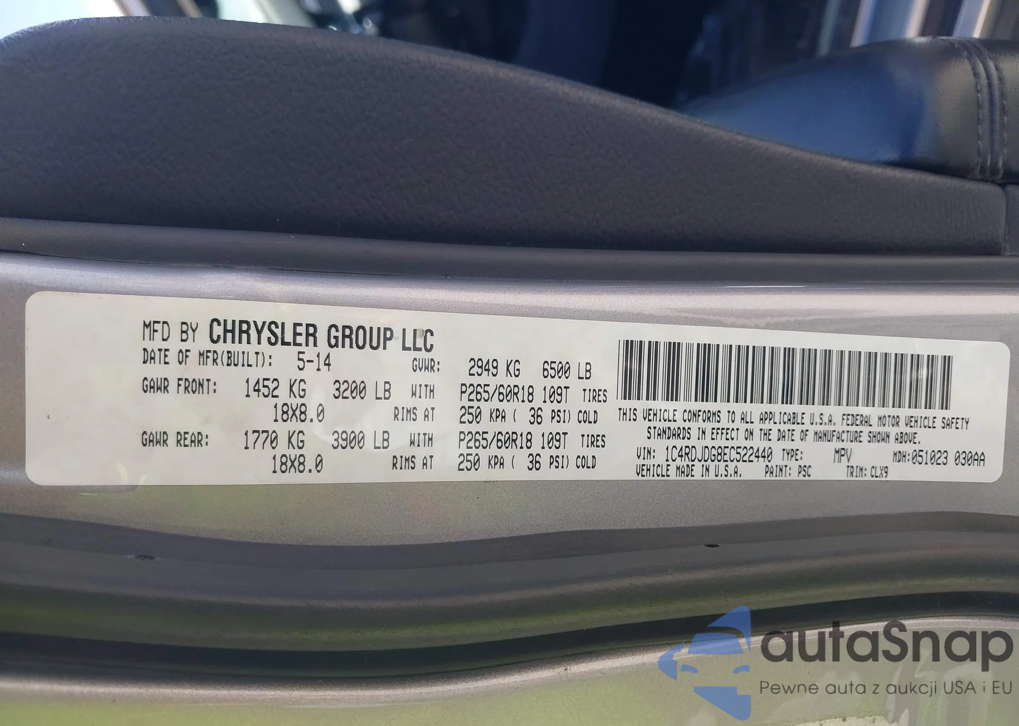 LOT: 43296733 VIN: 1C4RDJDG8EC522440