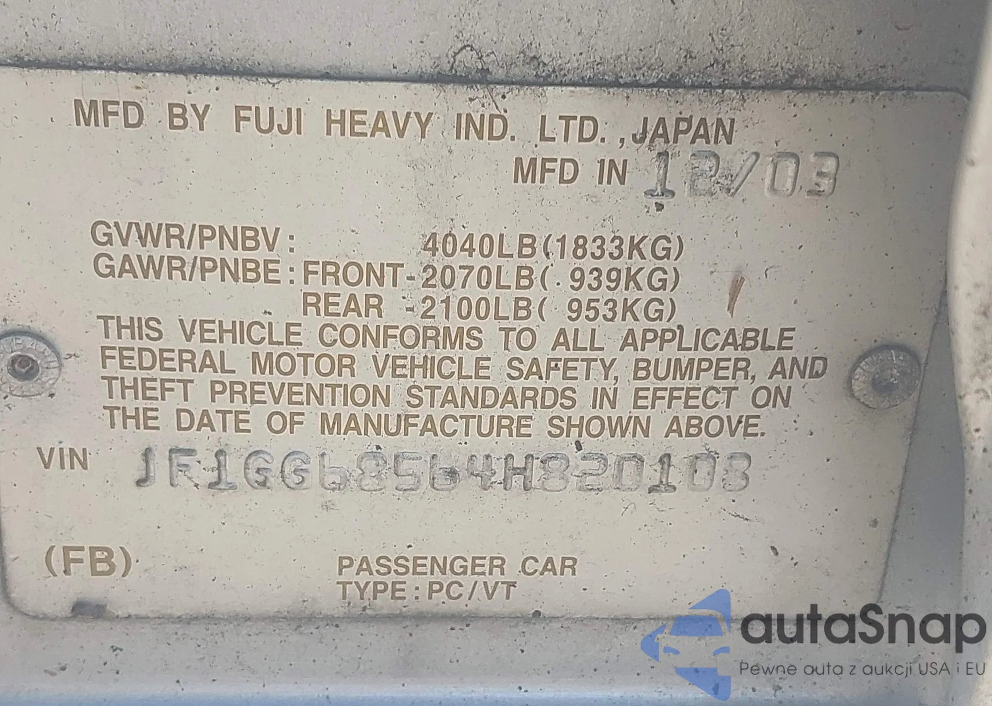 LOT: 42937760 VIN: 1HGFA16818L048502