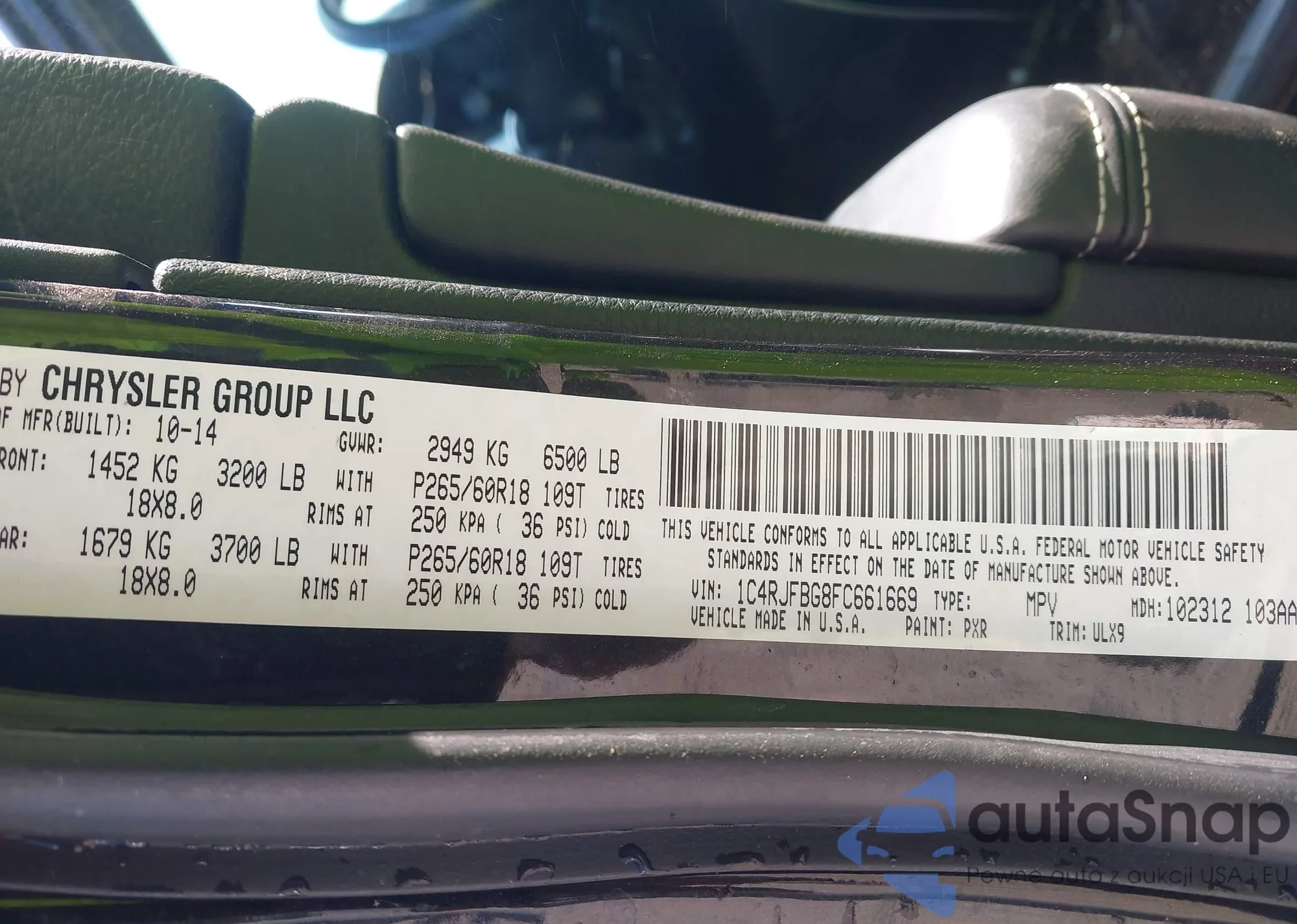 • VIN 1C4RJFBG8FC661669