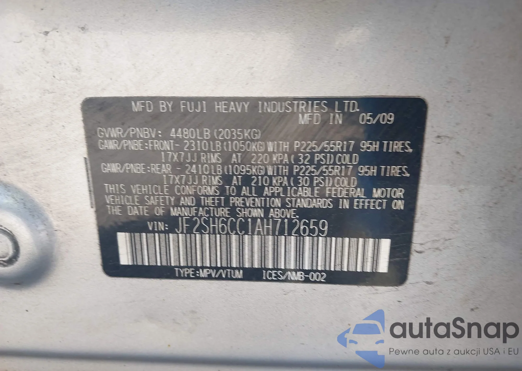 • VIN JF2SH6CC1AH712659