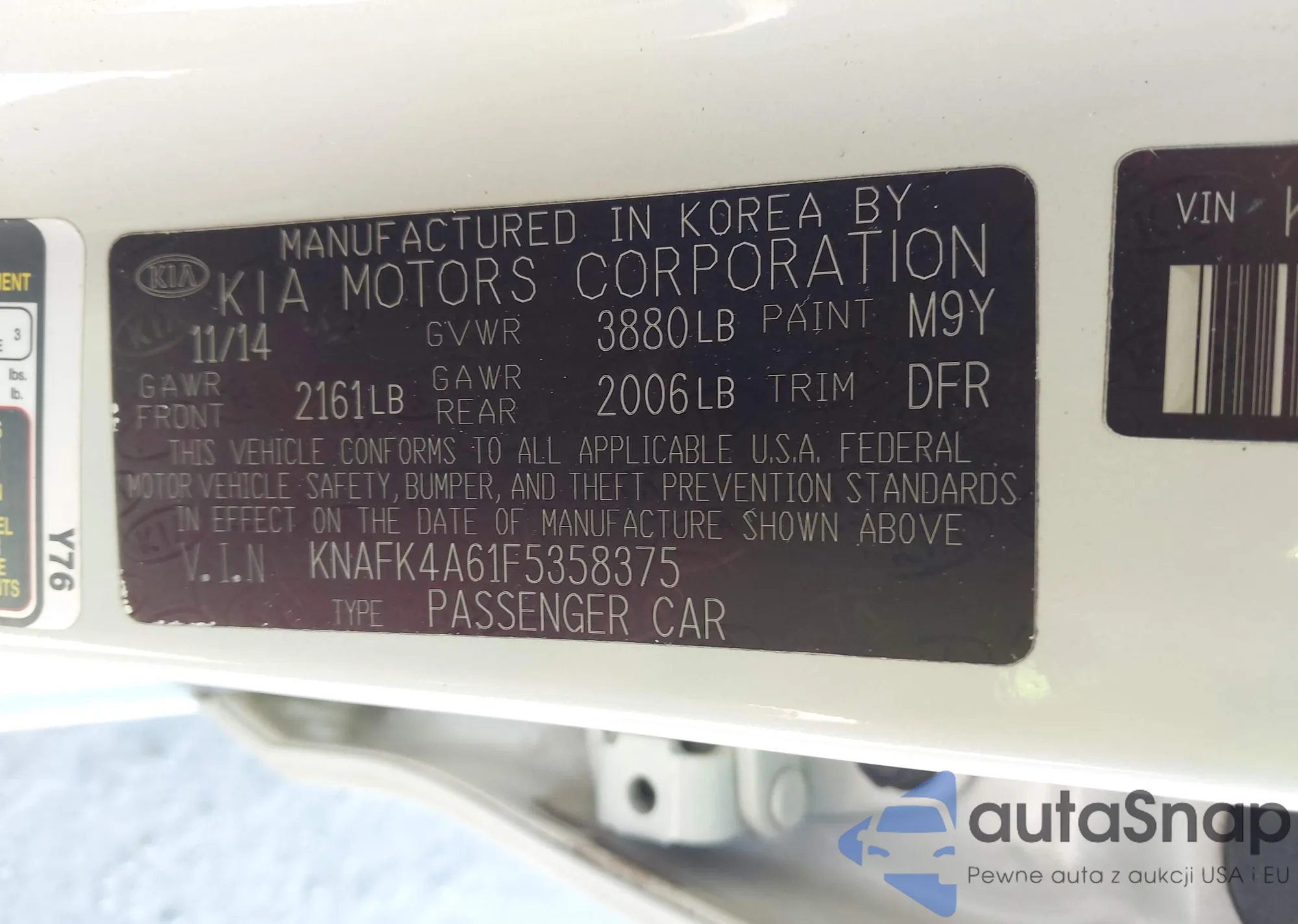 • VIN KNAFU4A26C5508919