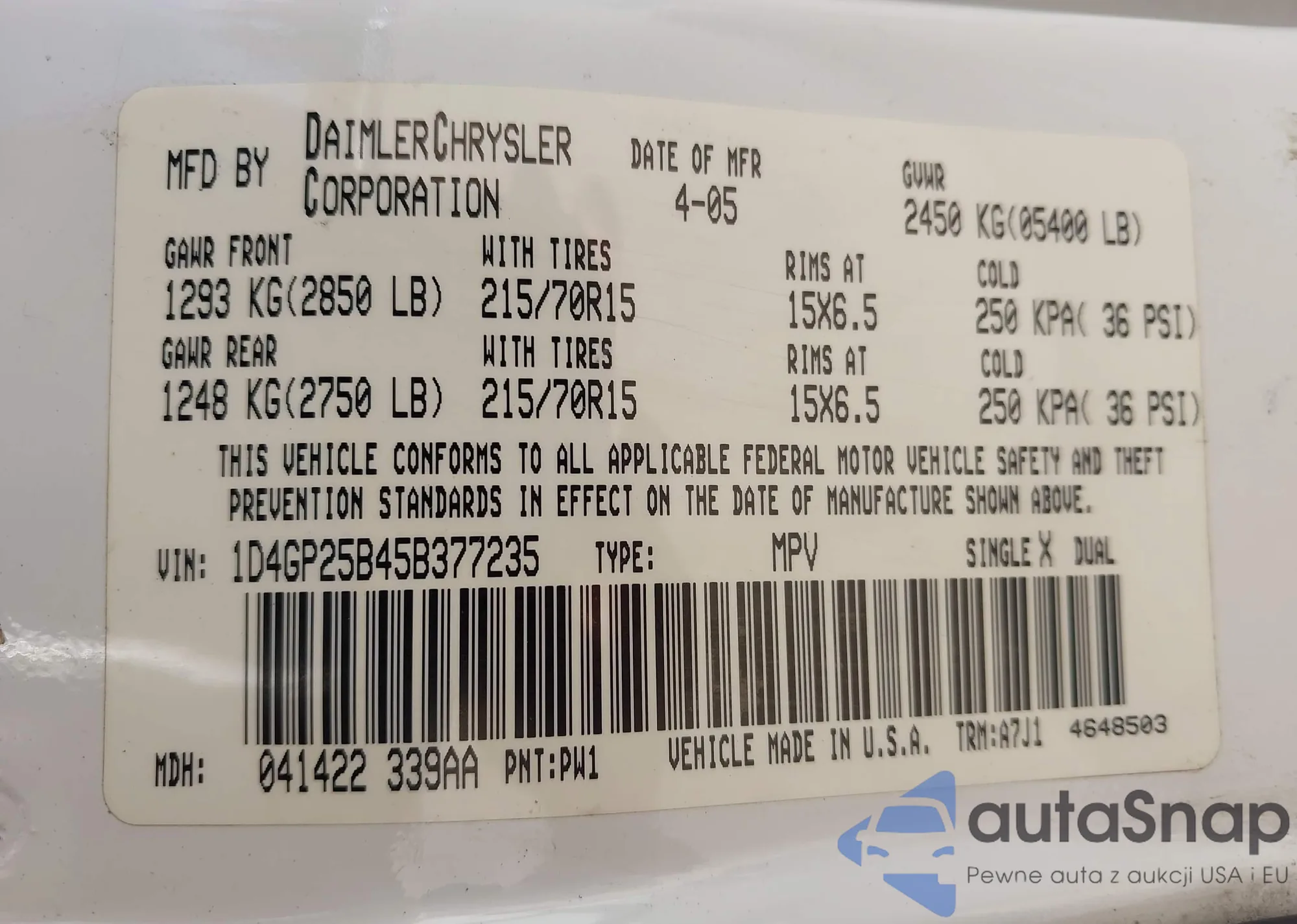 • VIN 1D4GP25B45B377235