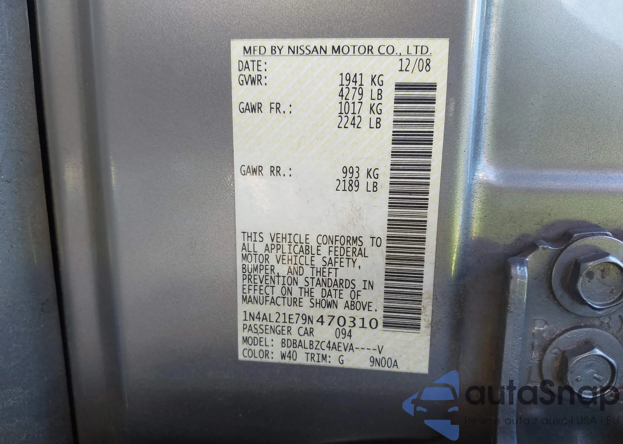 LOT: 43254700 VIN: 1N4AL21E79N470310