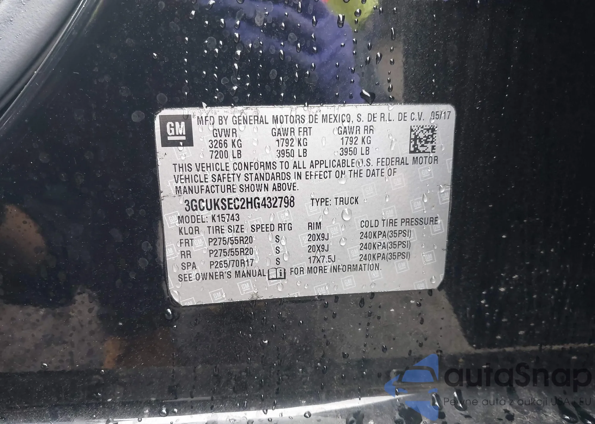 LOT: 41957376 VIN: 3GCUKSEC2HG432798