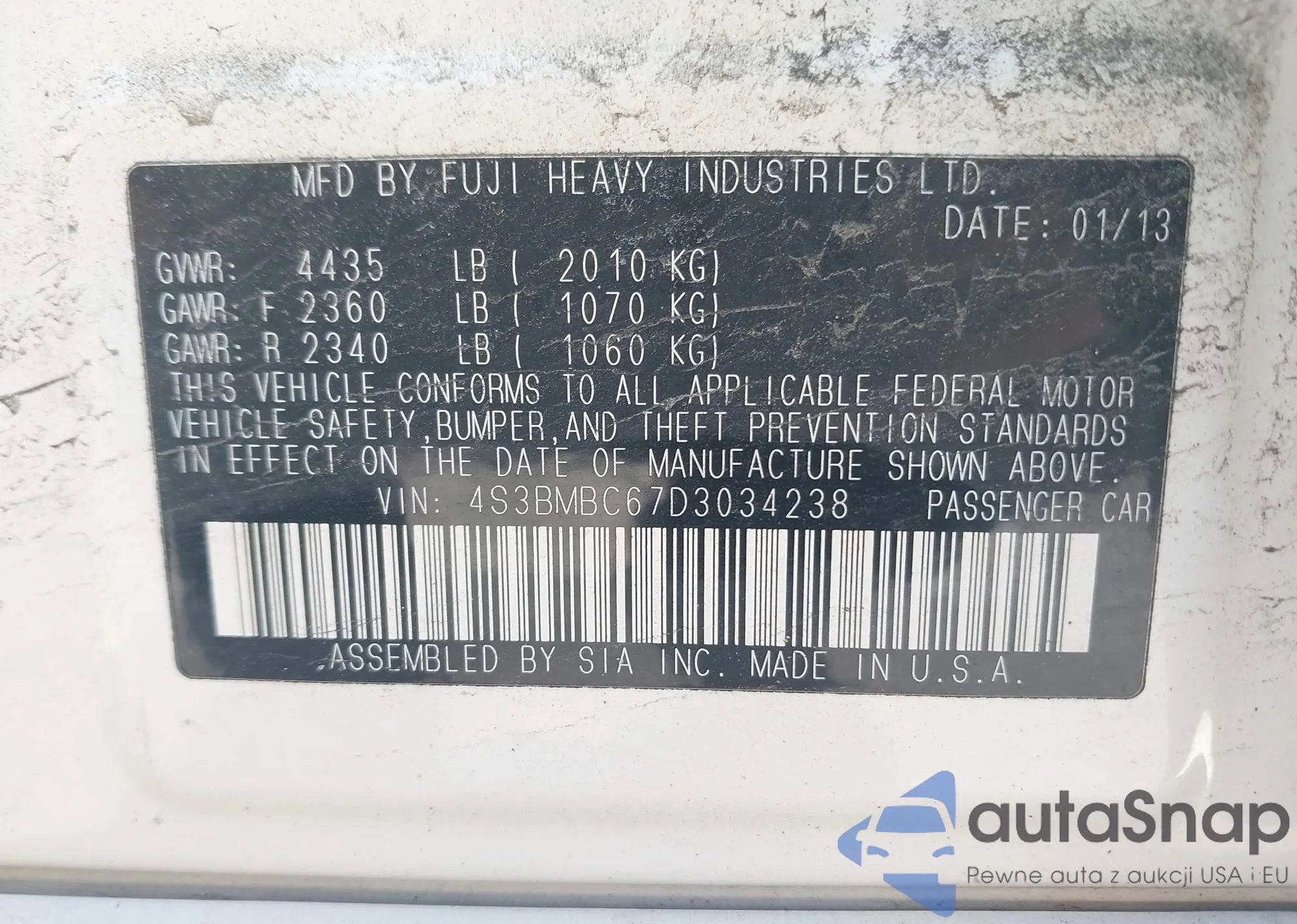 • VIN 1HGCP3F80BA001686