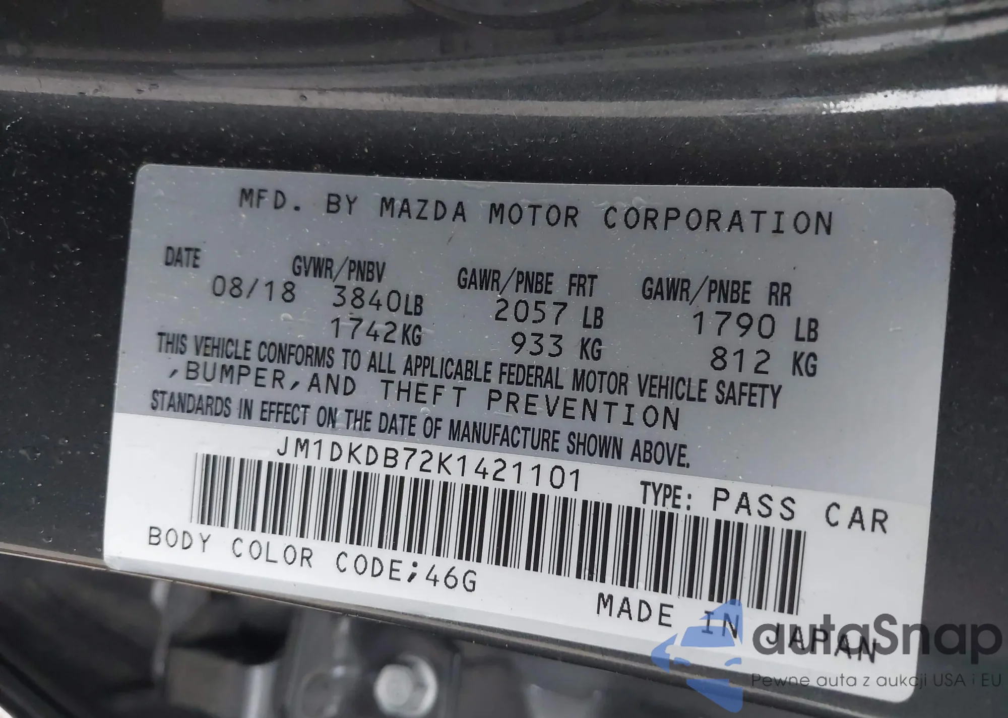 LOT: 43024721 VIN: JM1DKDB72K1421101
